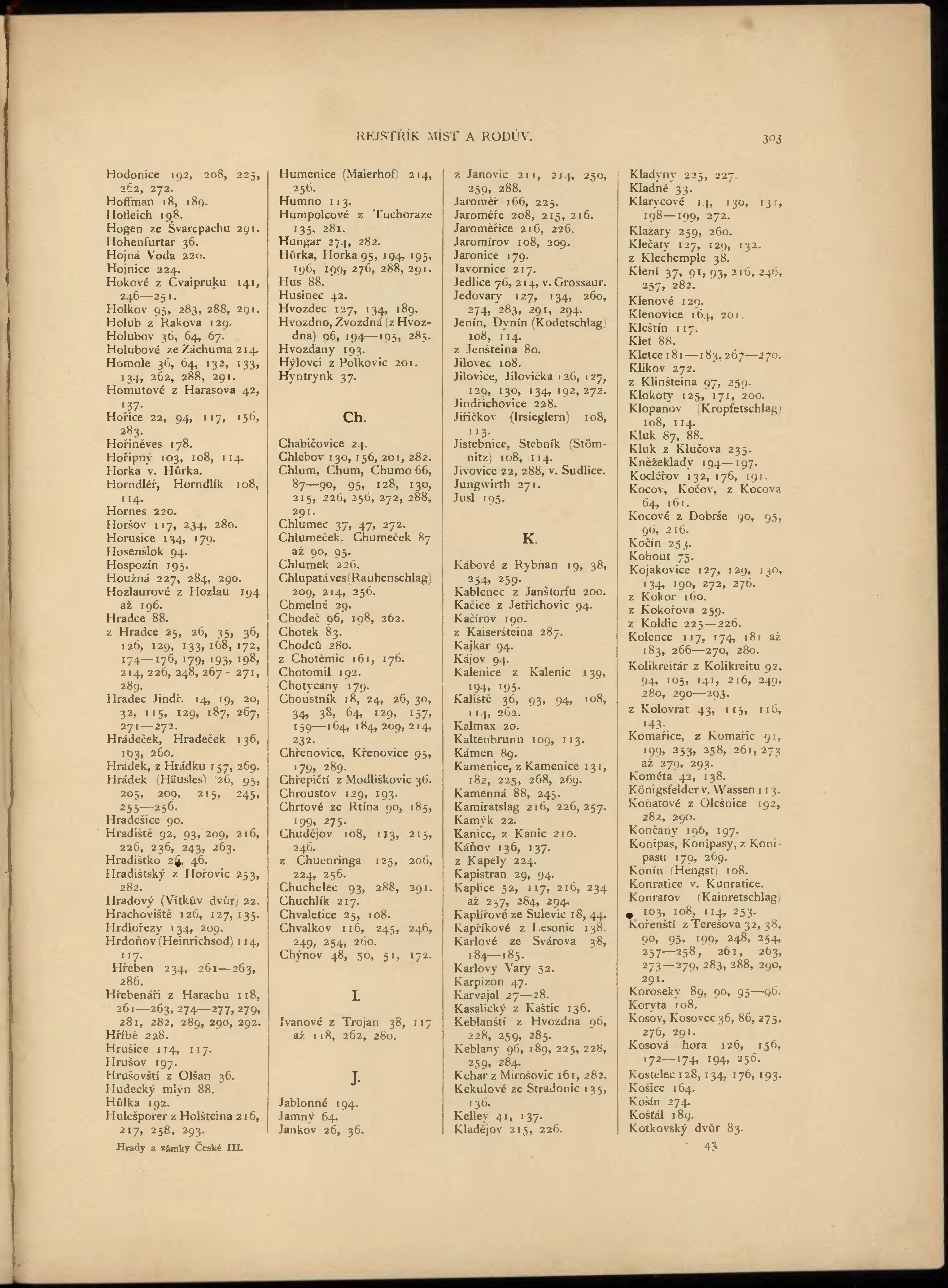 * Číslo stránky: 303 Typ stránky: rejstřík