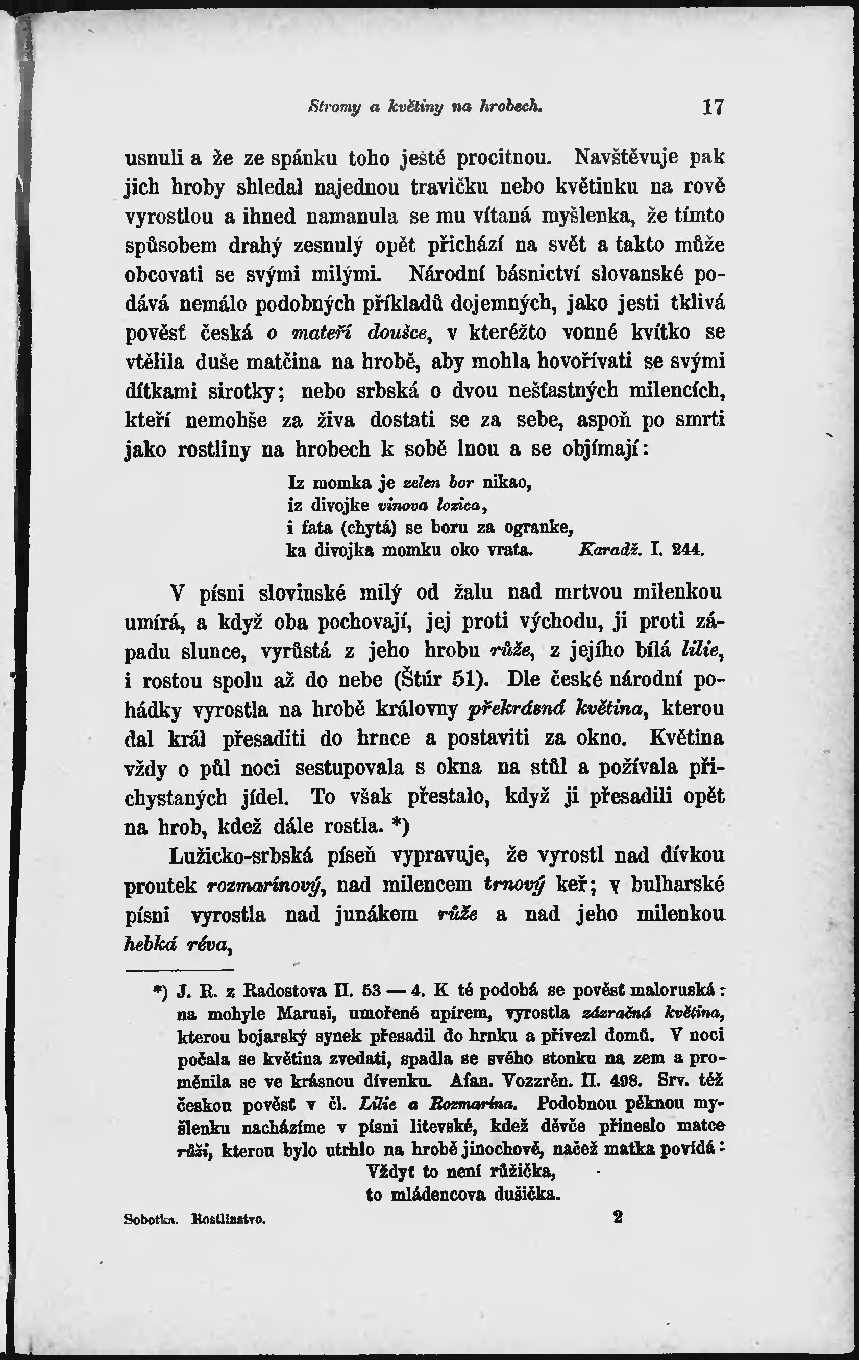 Rostlinstvo a jeho význam v národních písních, pověstech, bá...