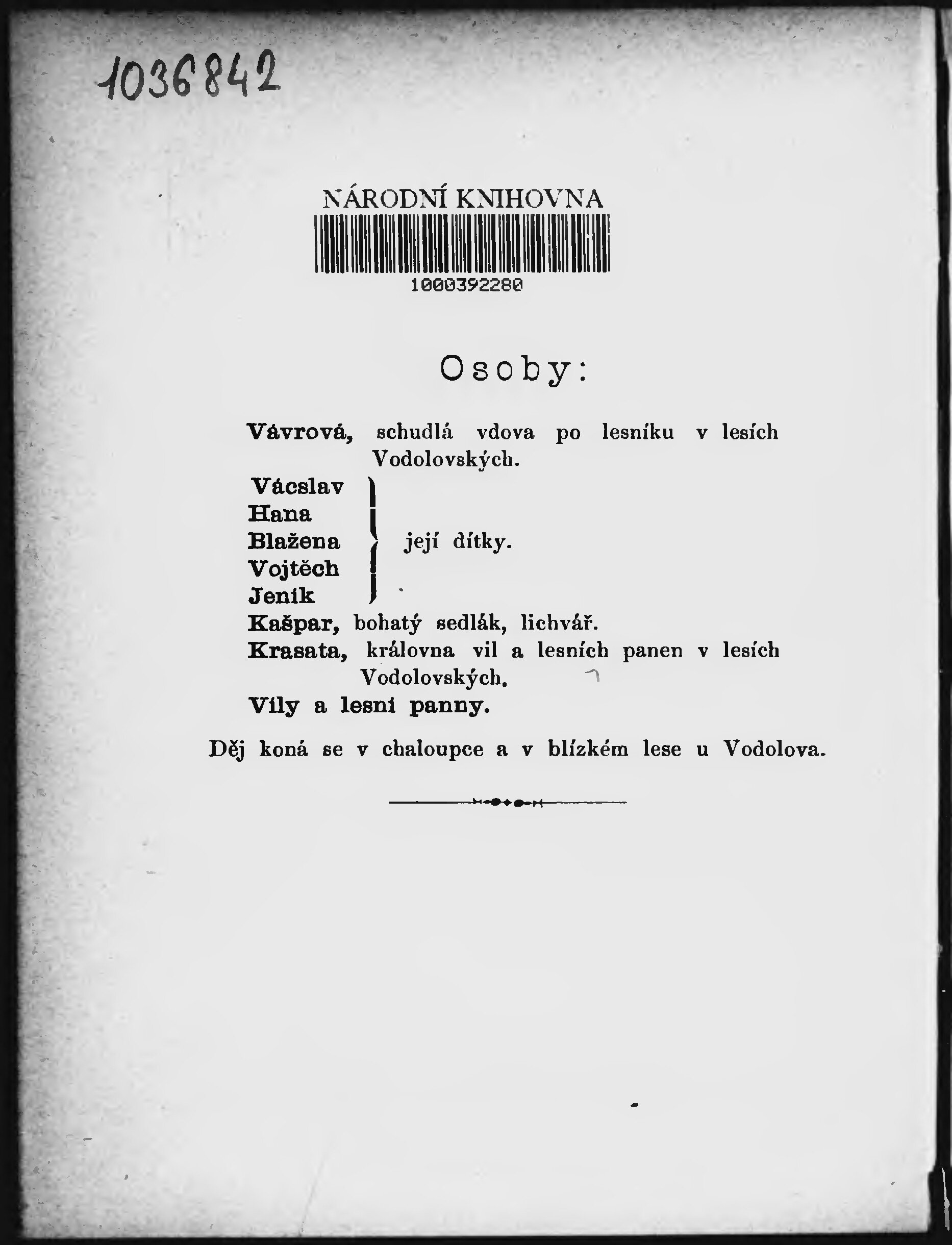 Krasata, královna vil a lesních panen v lesích Vodolovských
