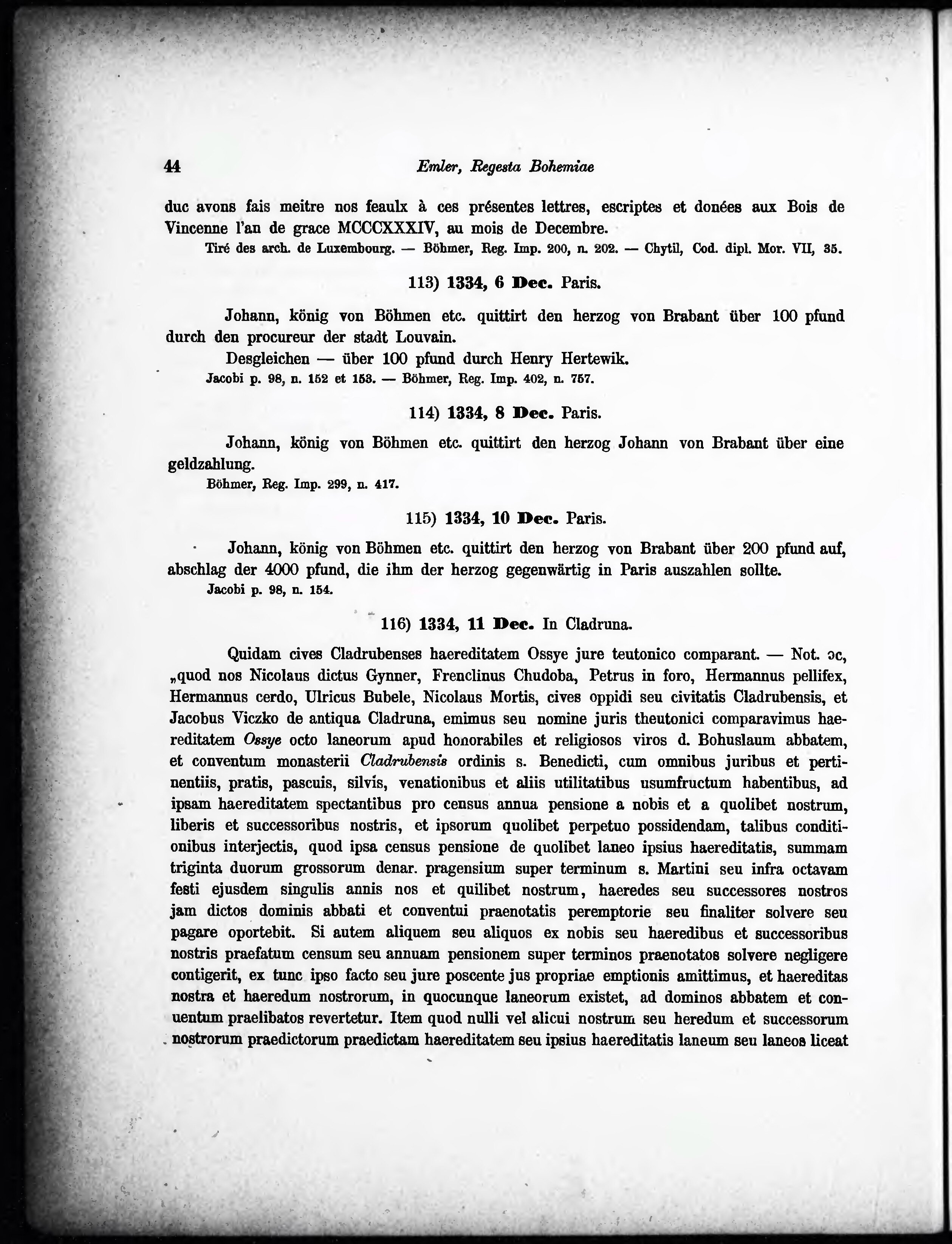 * Volná část monografie: svazek - Regesta diplomatica nec non epistolaria Bohemiae et Moraviae