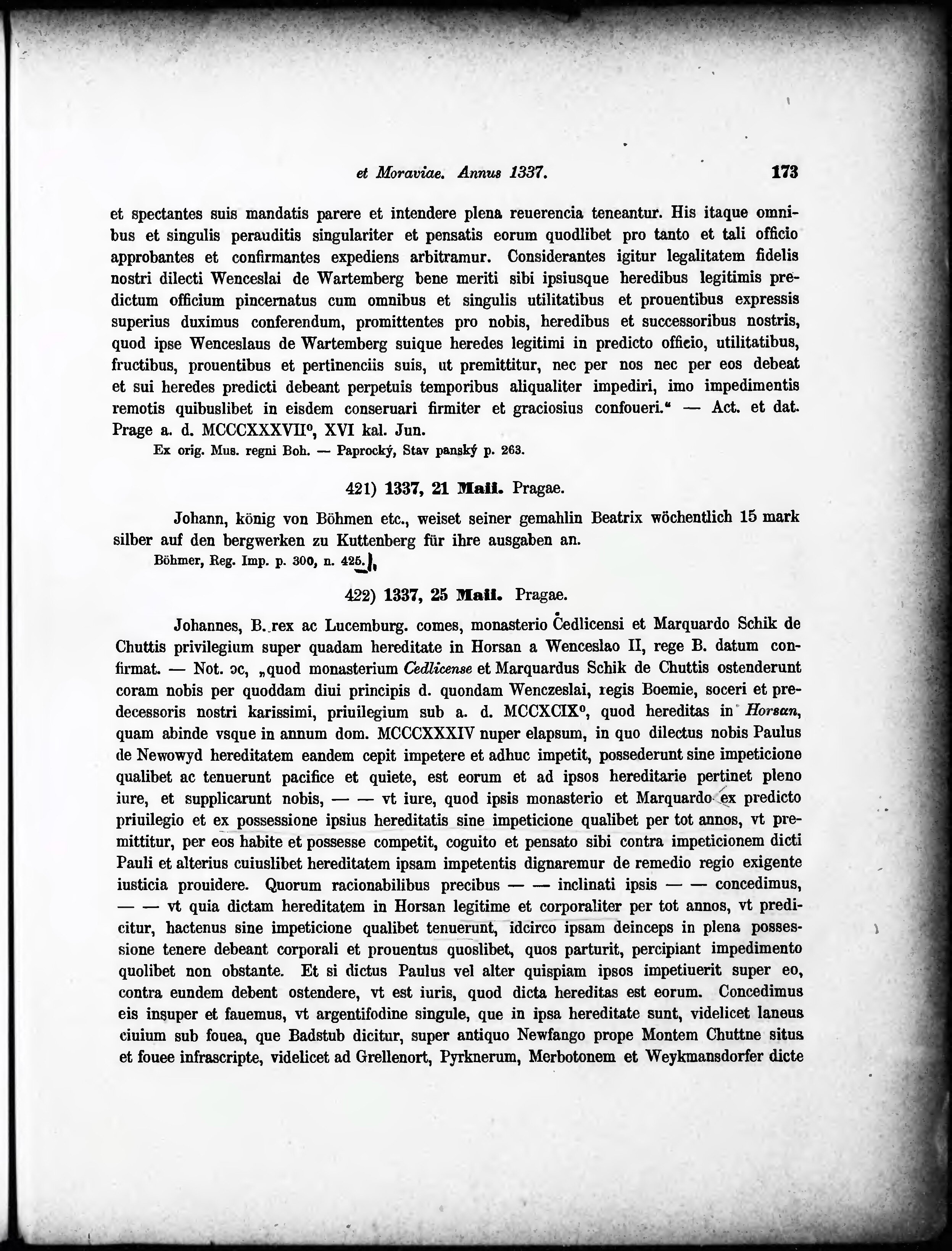 * Volná část monografie: svazek - Regesta diplomatica nec non epistolaria Bohemiae et Moraviae