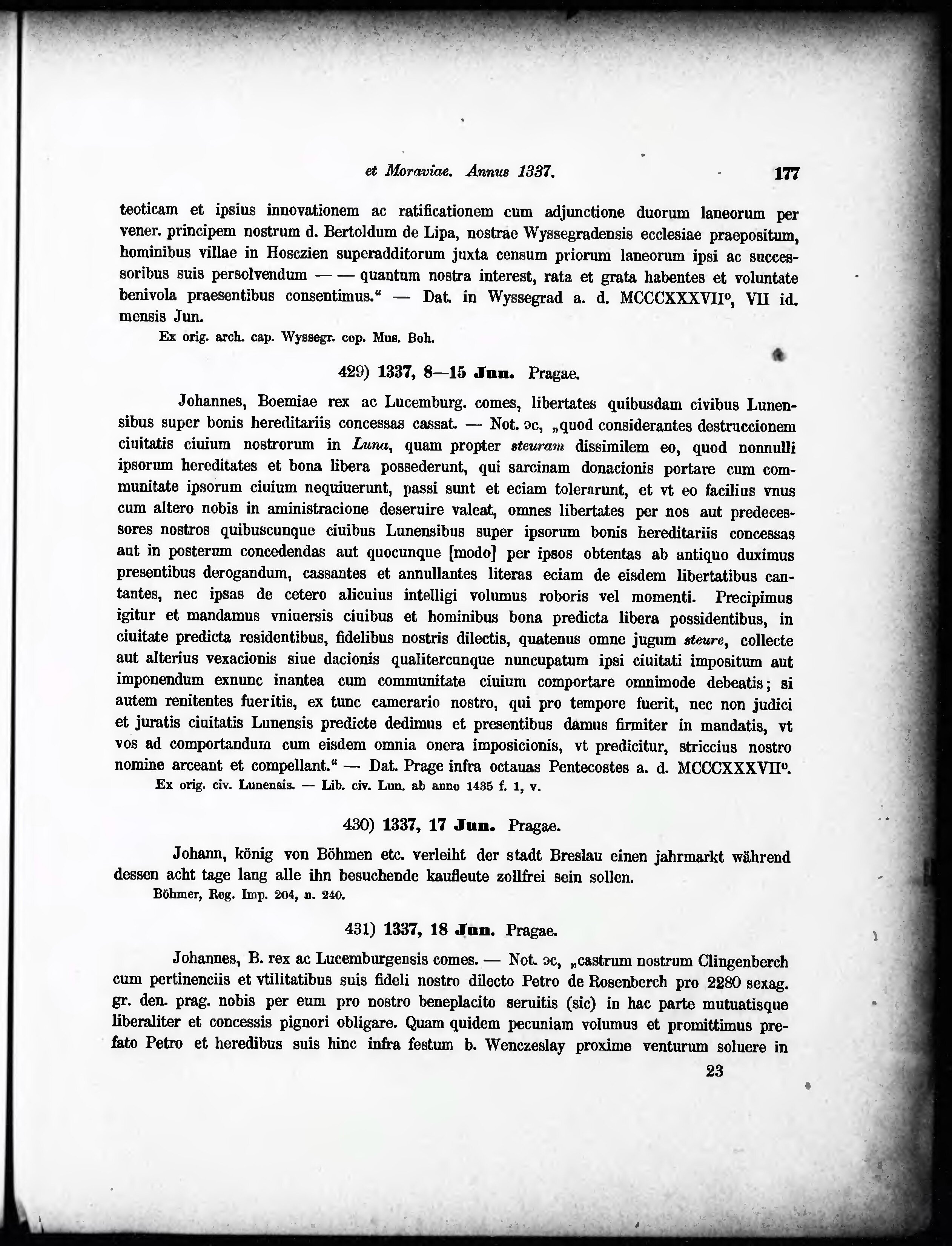 svazek - Regesta diplomatica nec non epistolaria Bohemiae et Moraviae