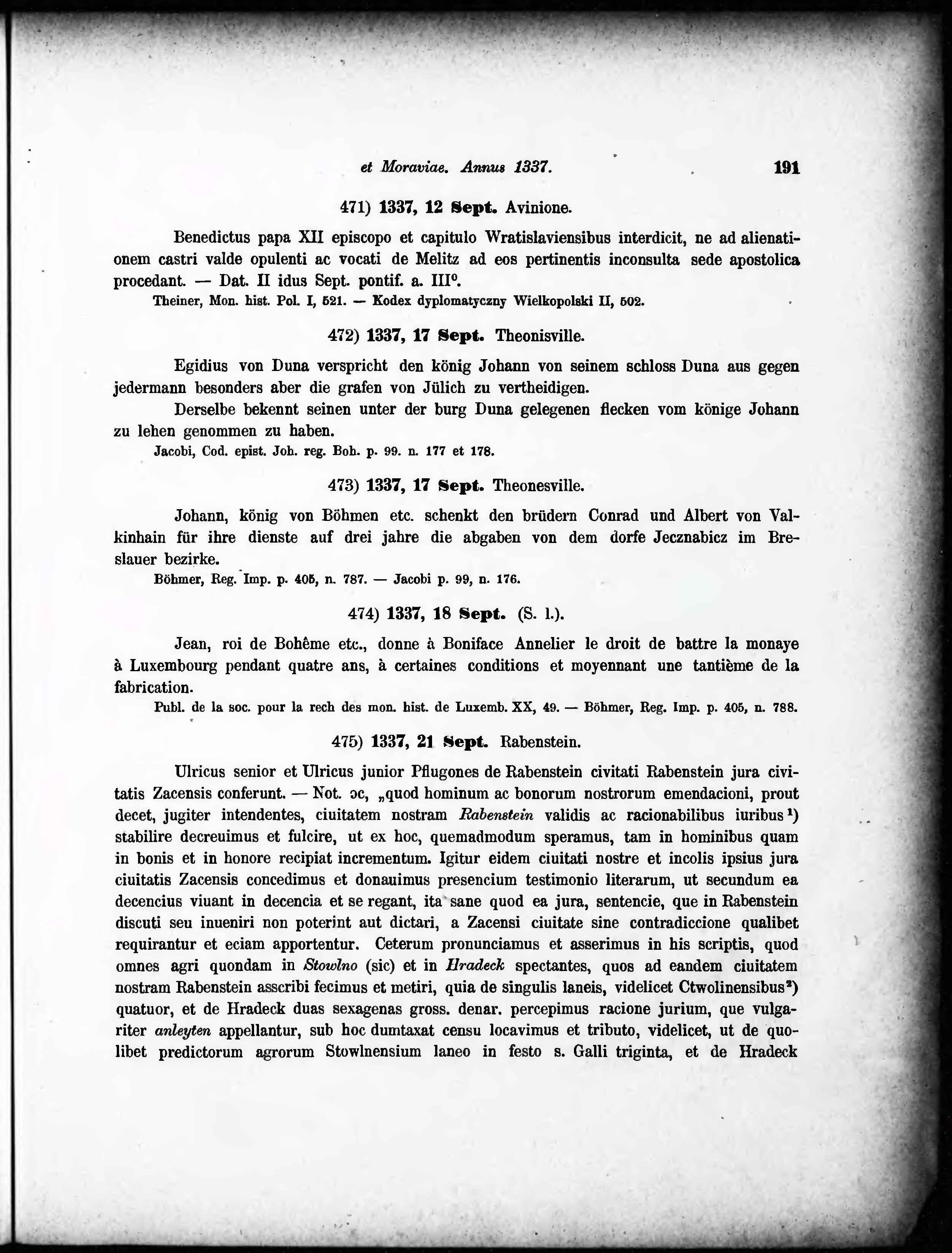 * Volná část monografie: svazek - Regesta diplomatica nec non epistolaria Bohemiae et Moraviae