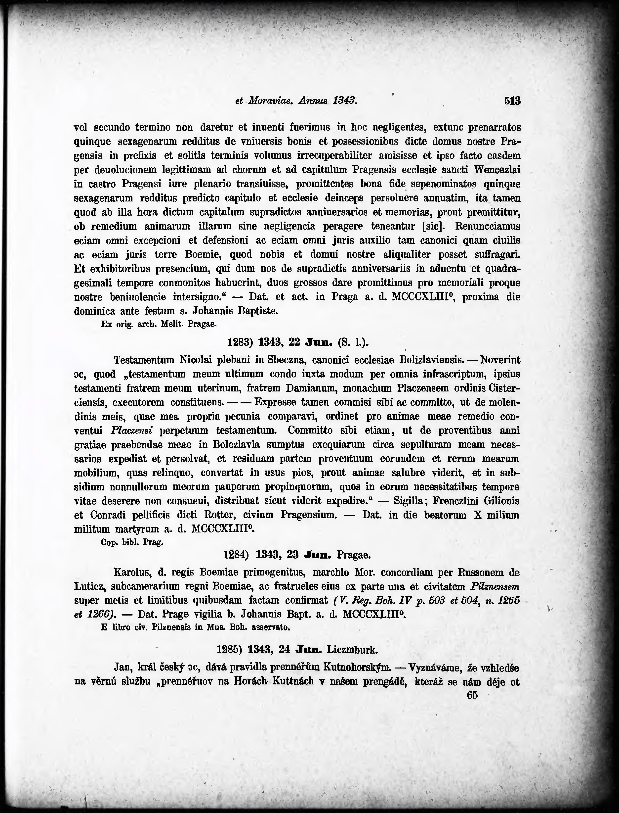 svazek - Regesta diplomatica nec non epistolaria Bohemiae et Moraviae