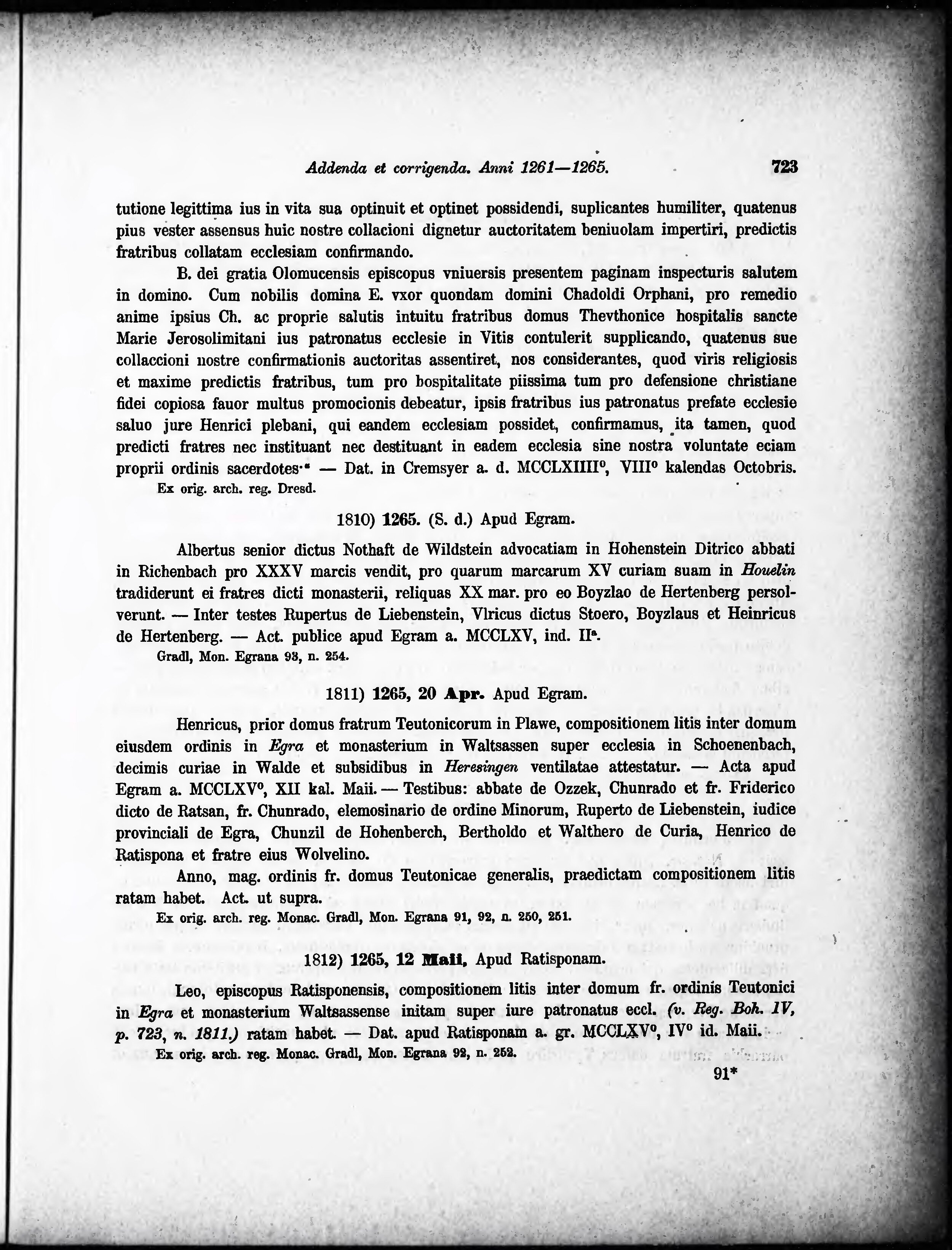* Volná část monografie: svazek - Regesta diplomatica nec non epistolaria Bohemiae et Moraviae