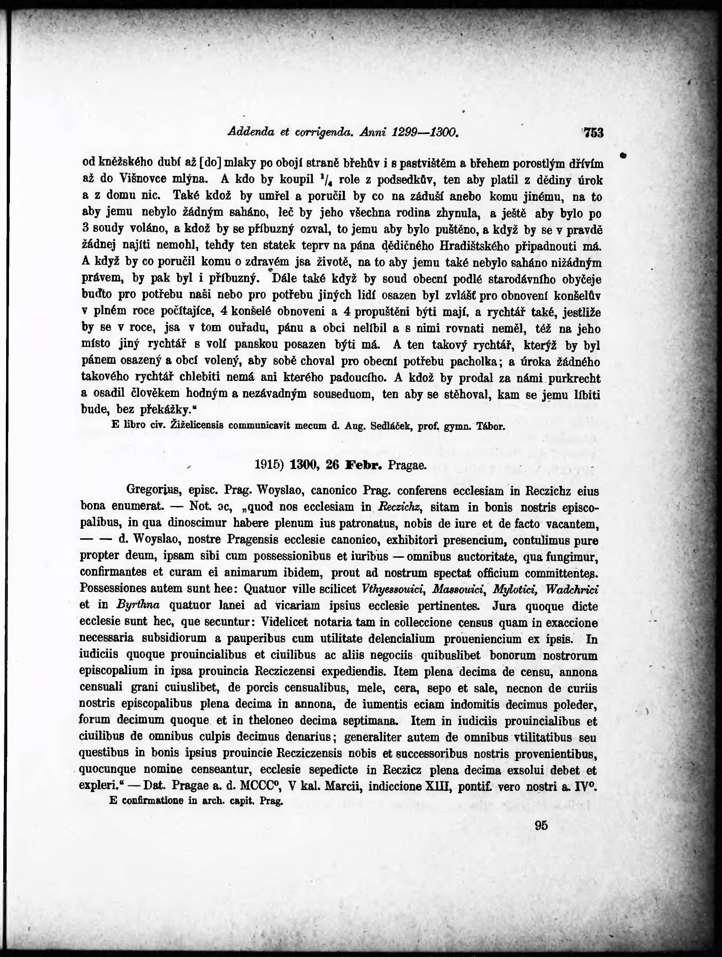 * Volná část monografie: svazek - Regesta diplomatica nec non epistolaria Bohemiae et Moraviae