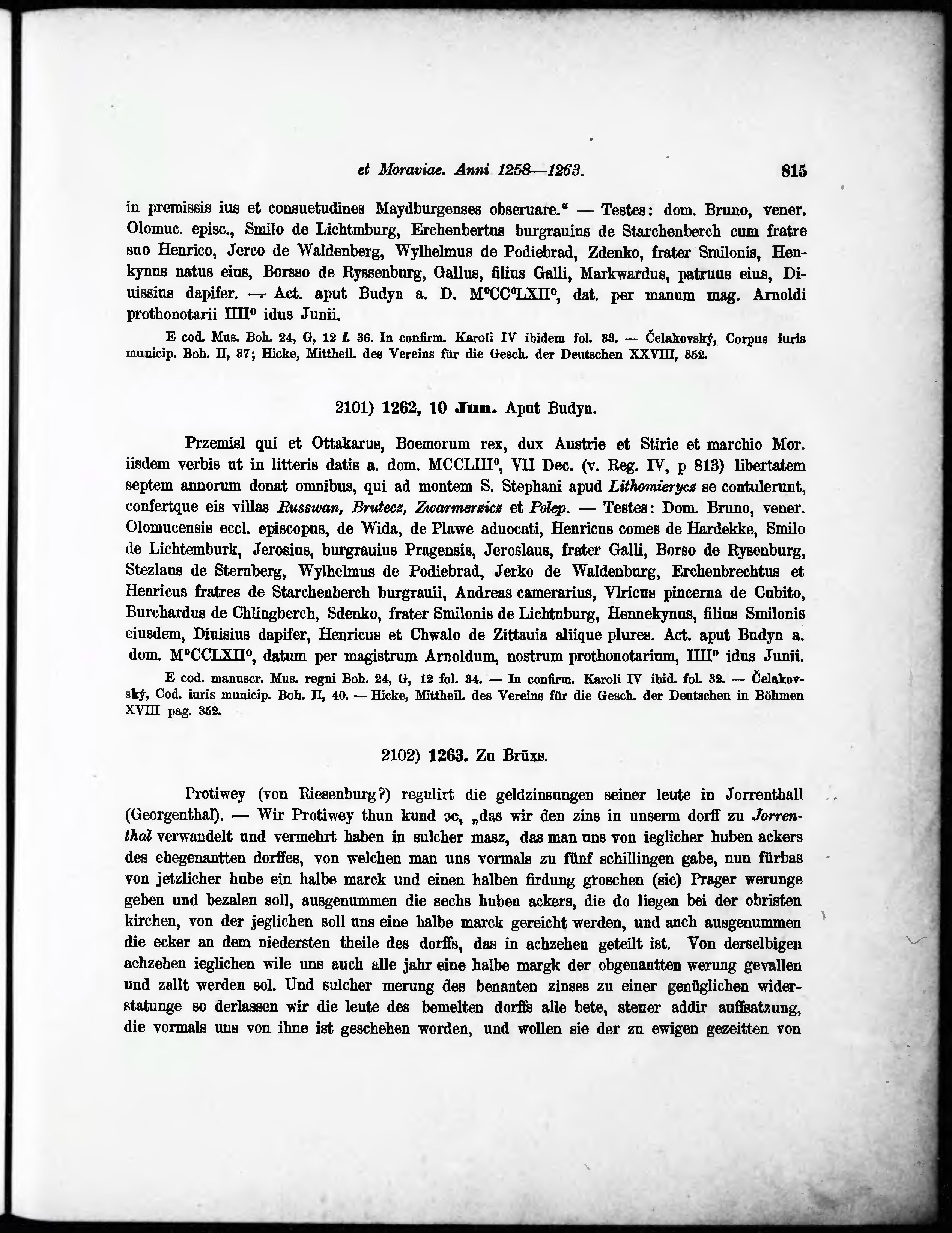 * Volná část monografie: svazek - Regesta diplomatica nec non epistolaria Bohemiae et Moraviae