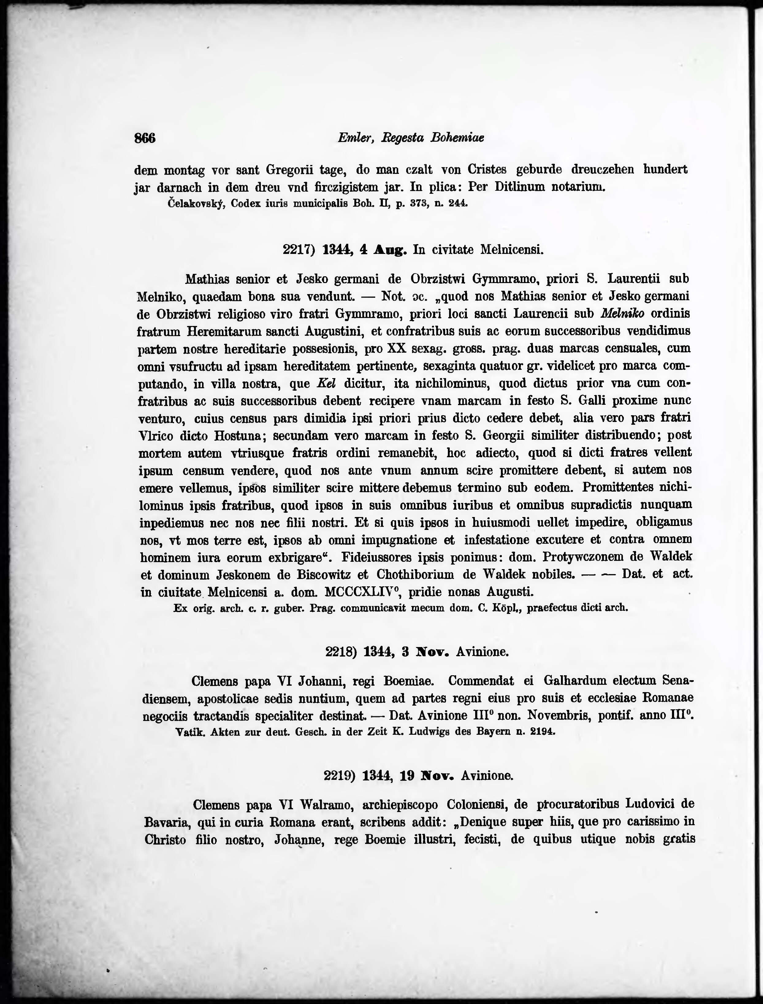 * Volná část monografie: svazek - Regesta diplomatica nec non epistolaria Bohemiae et Moraviae