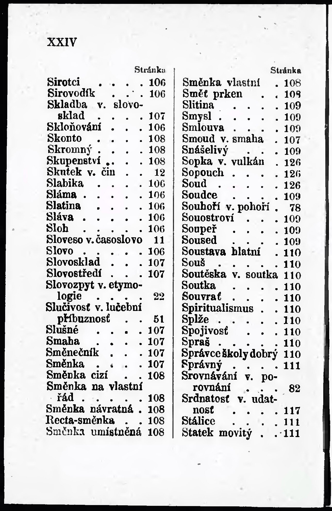 * Číslo stránky: XXIV Typ stránky: rejstřík