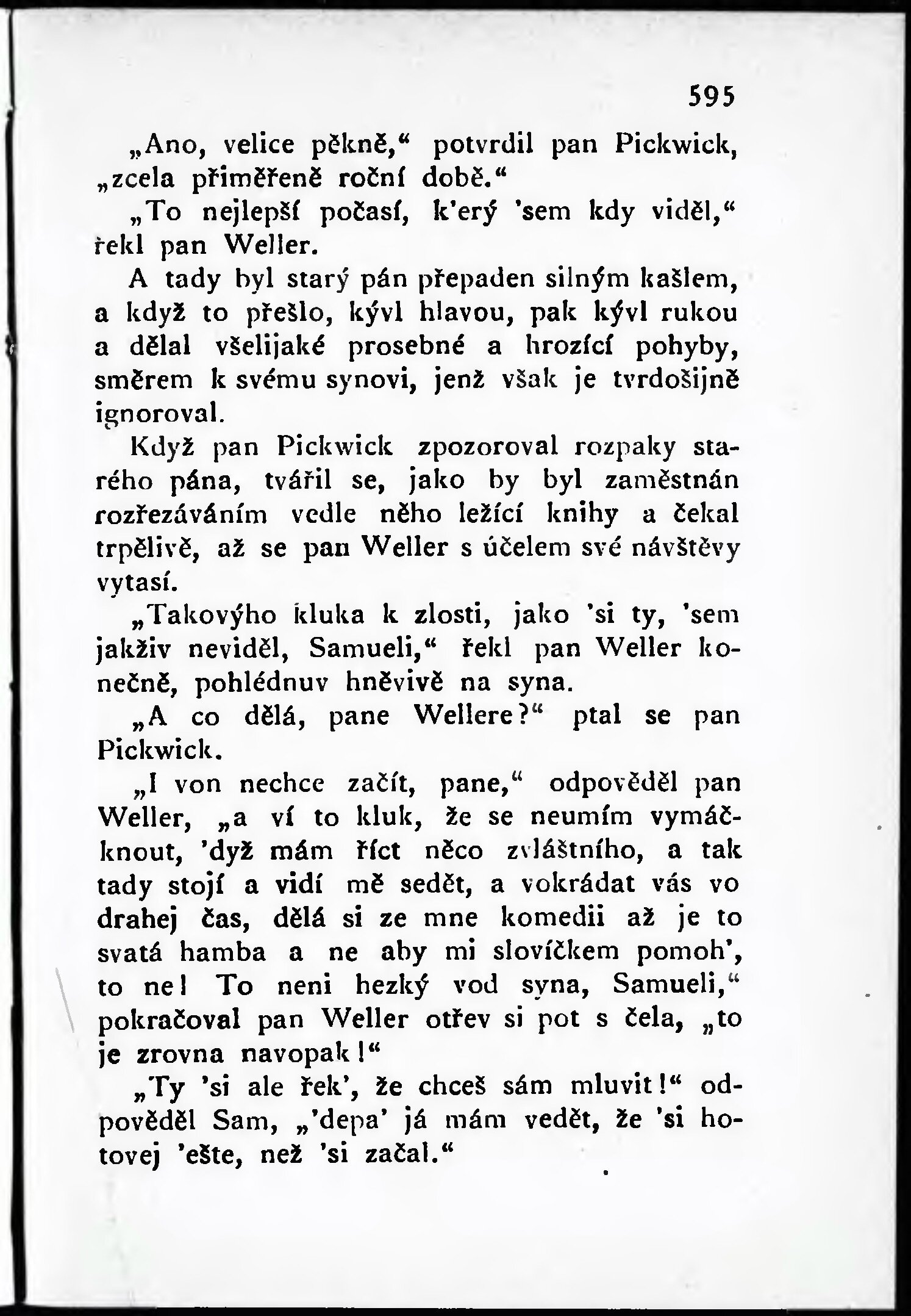 Odbývá se důležitá porada mezi panem Pickwickem a Samuelem Wellerem, při které obcuje jeho otec ...