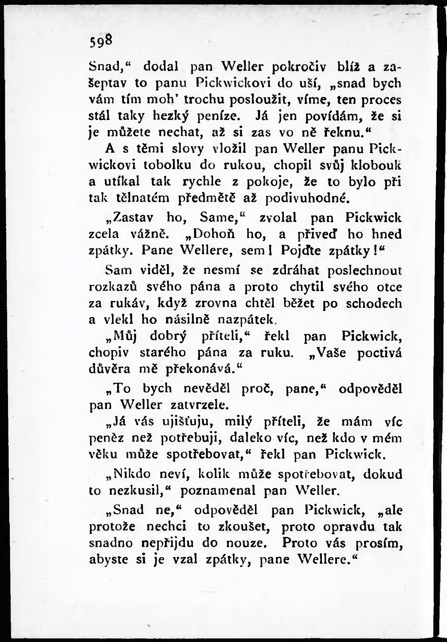 * Hlavní název: Odbývá se důležitá porada mezi panem Pickwickem a Samuelem Wellerem, při které obcuje jeho otec ...