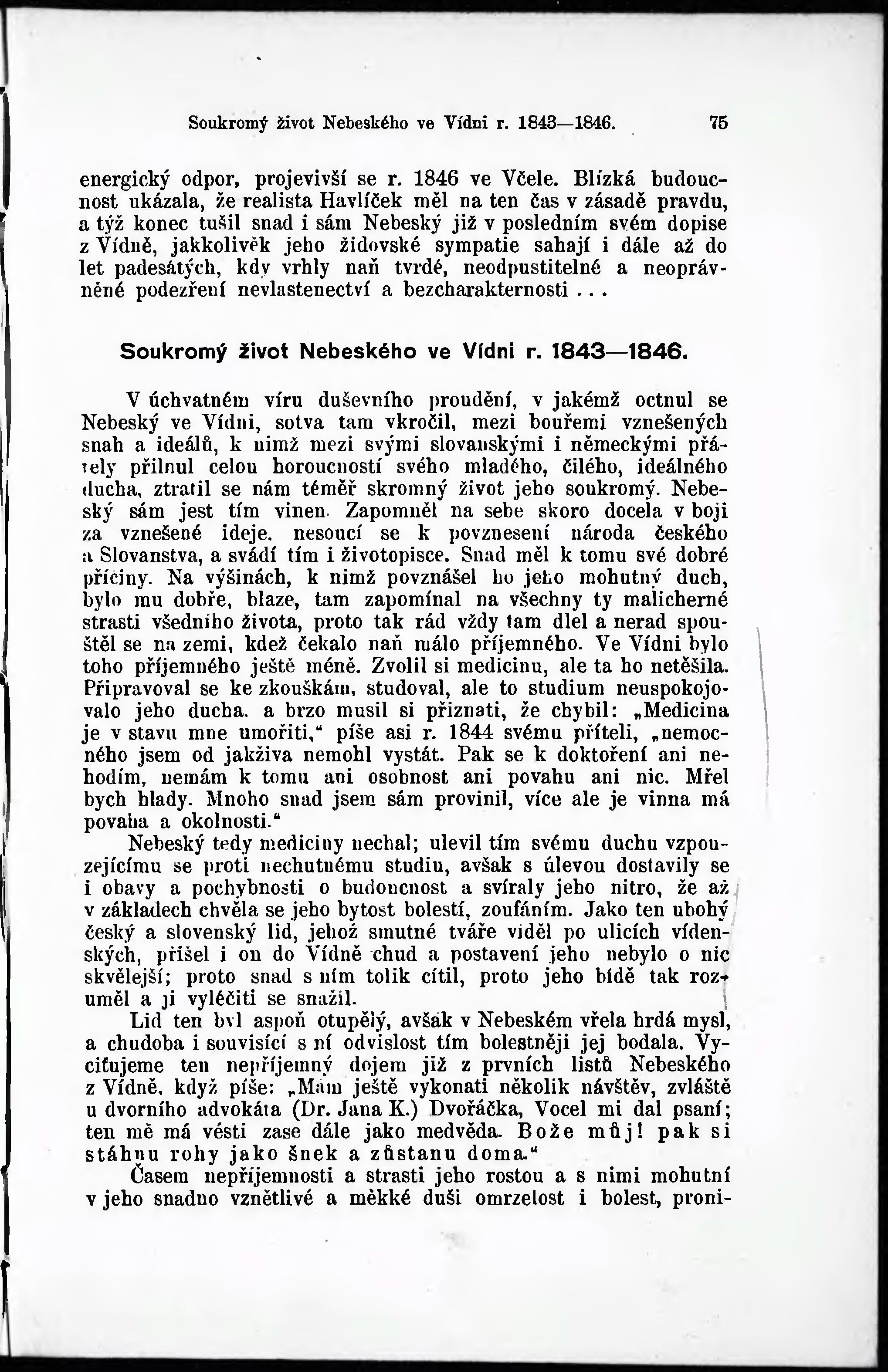 Soukromý život Nebeského ve Vídni 1843-1846