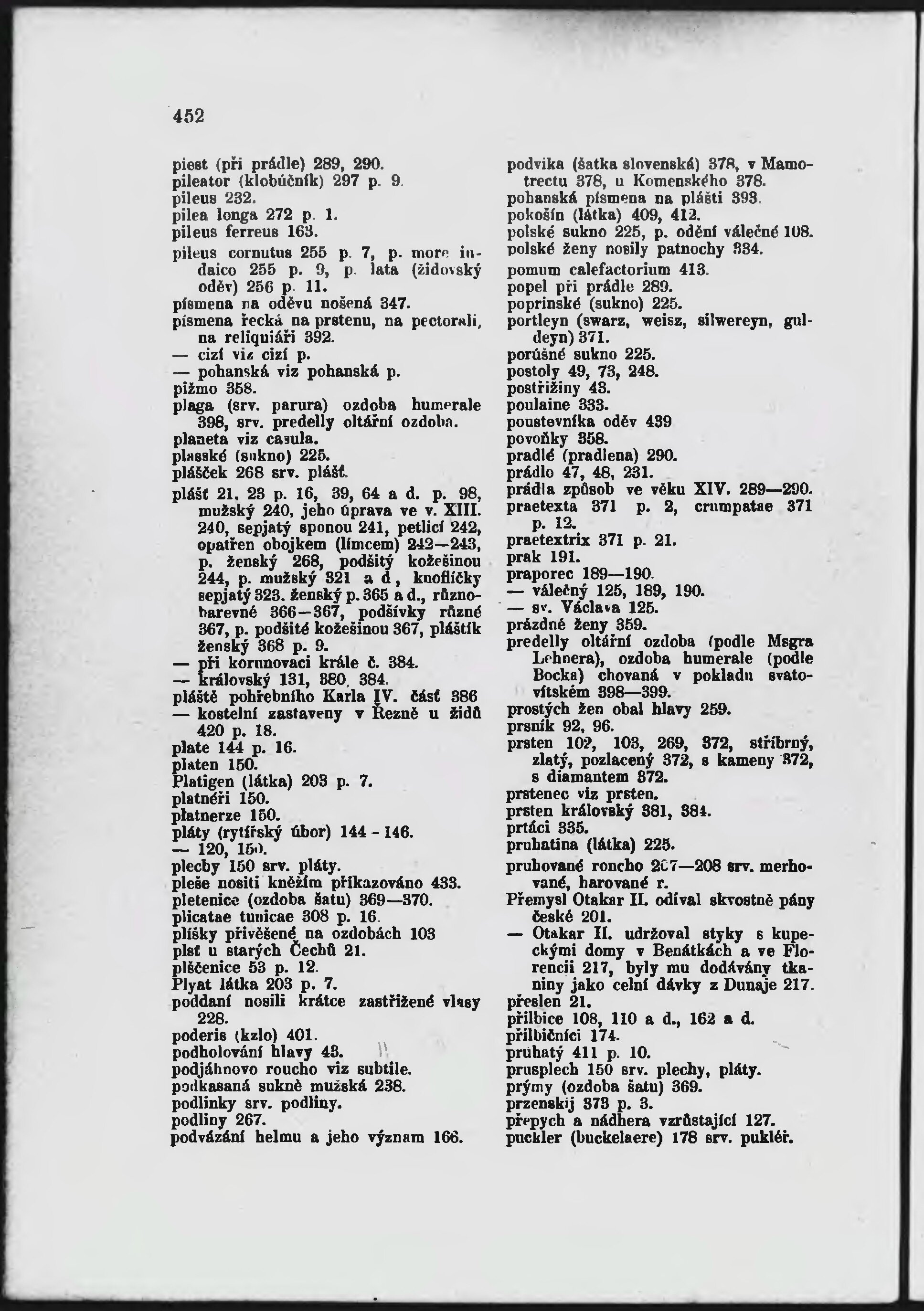 * Číslo stránky: 452 Typ stránky: rejstřík
