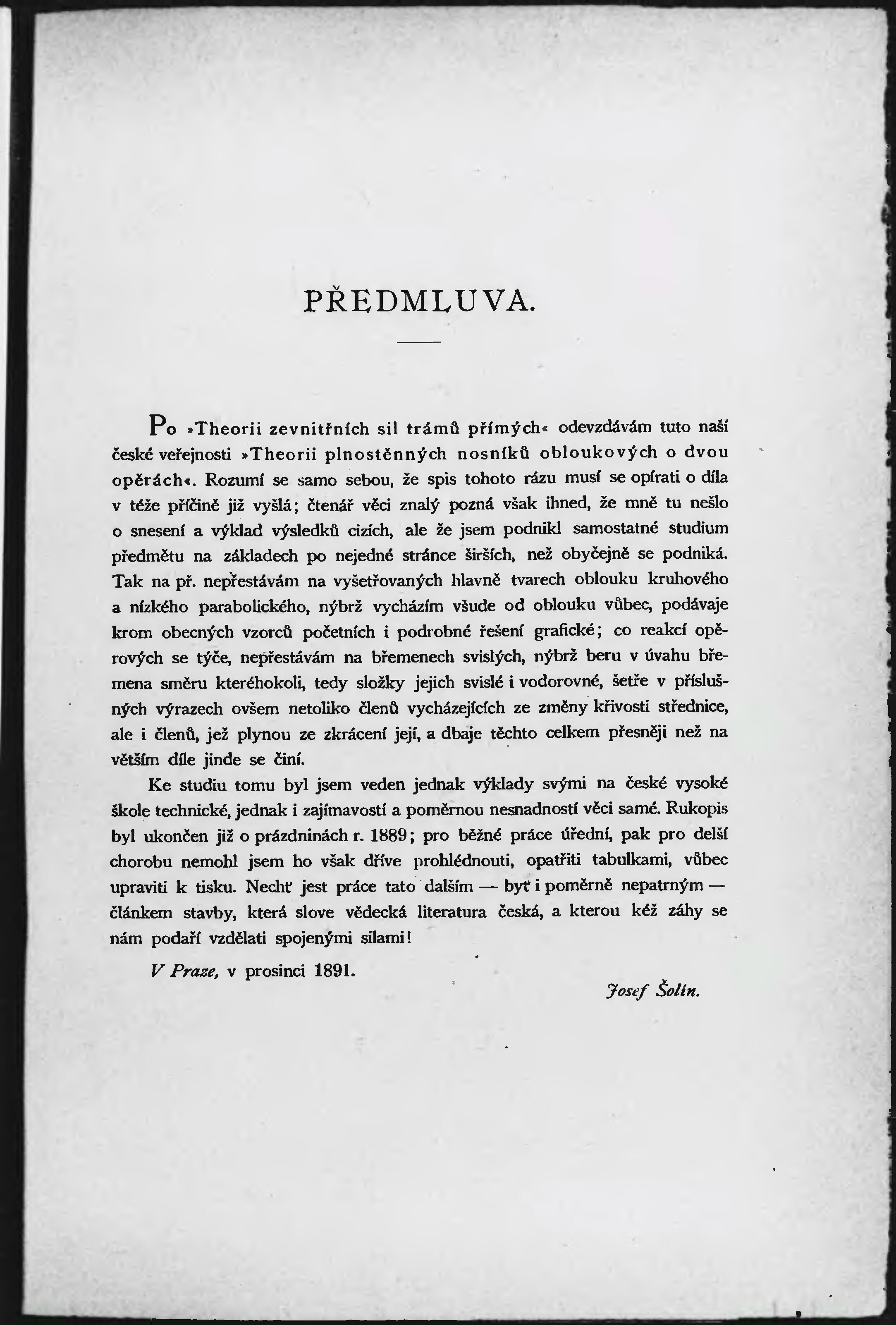 Theorie plnostěnných nosníků obloukových o dvou opěrách