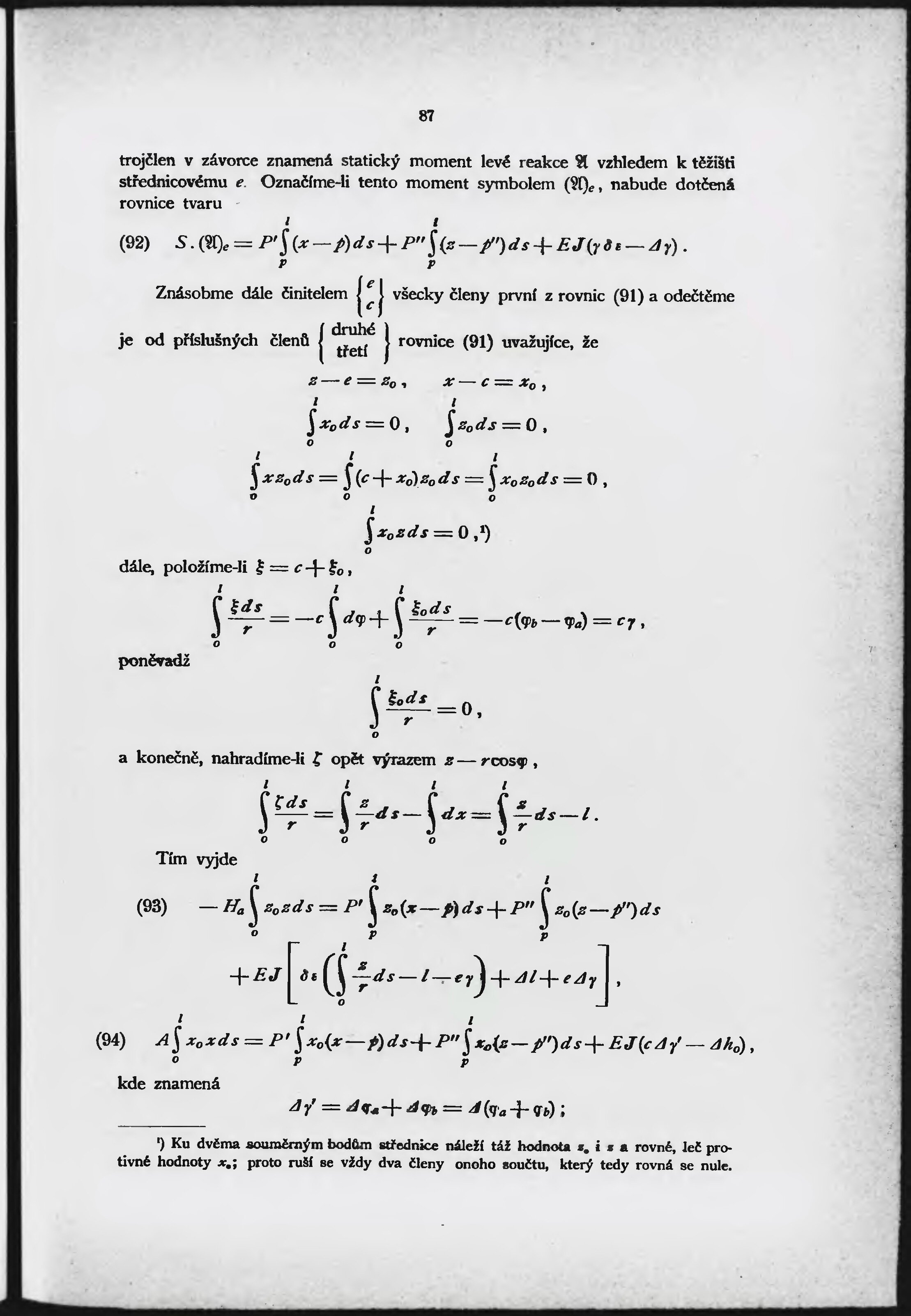 Theorie plnostěnných nosníků obloukových o dvou opěrách