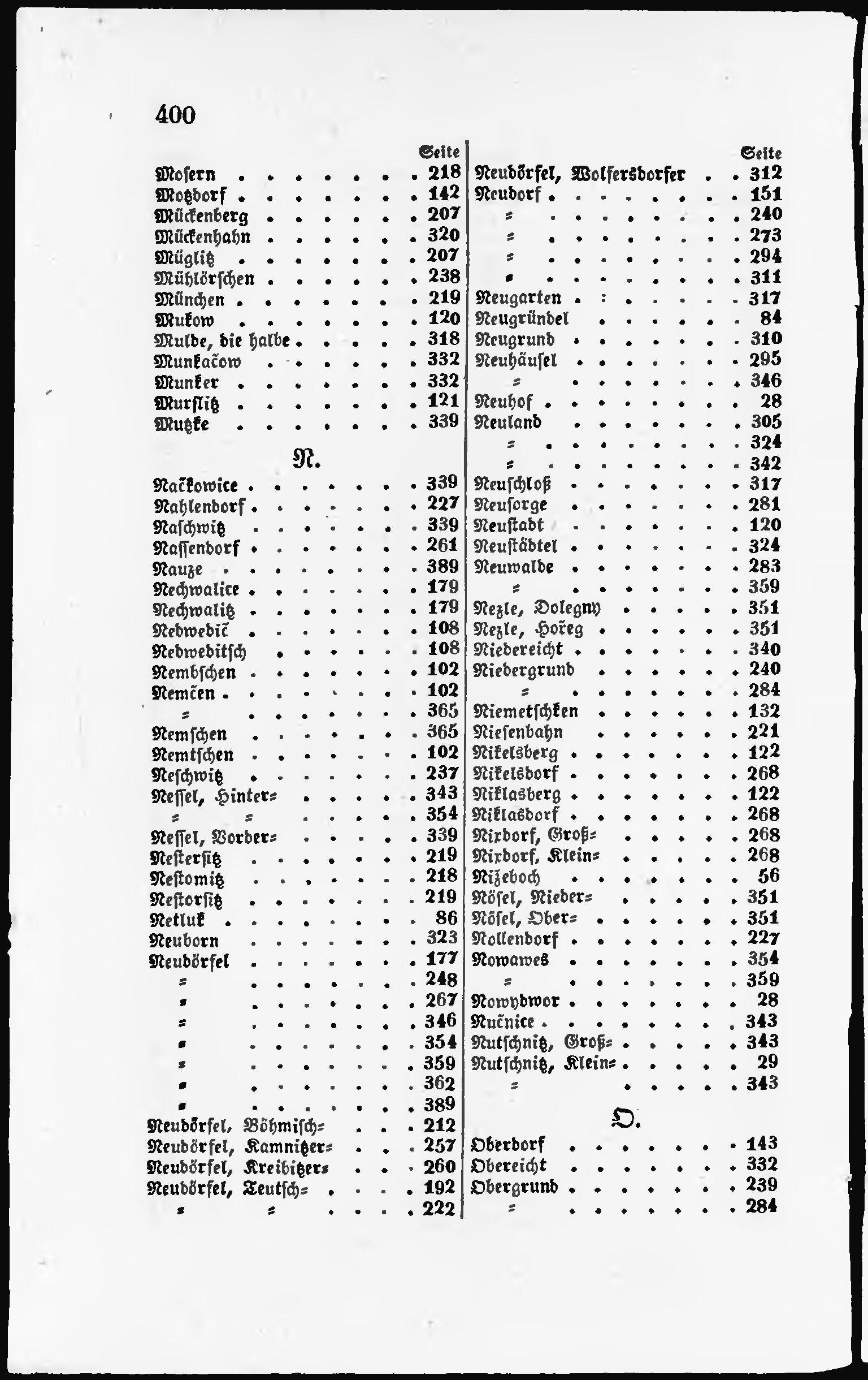 * Číslo stránky: 400 Typ stránky: rejstřík