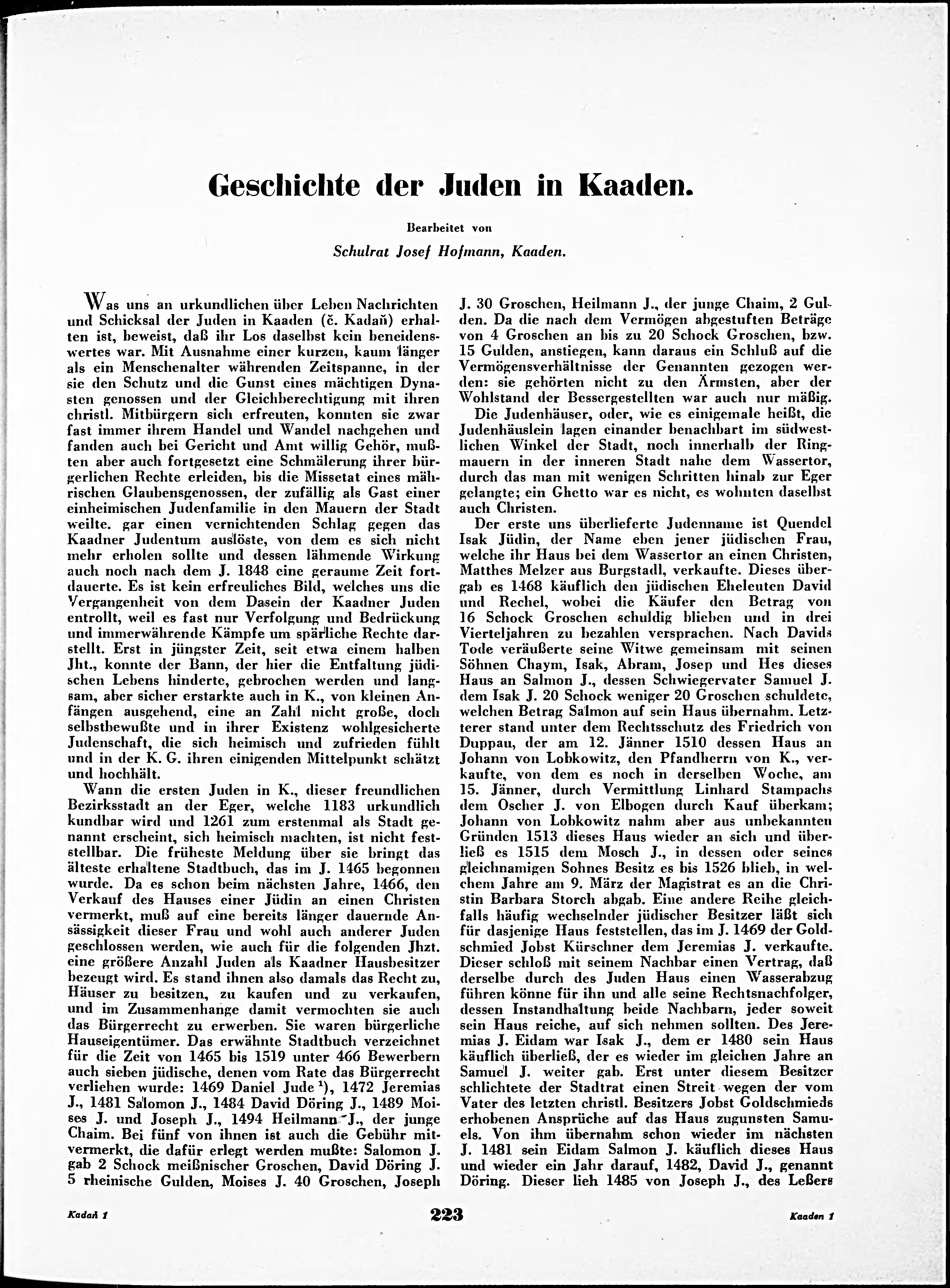 * Volná část monografie: svazek - Die Juden und Judengemeinden Böhmens in Vergangenheit und Gegenwart
