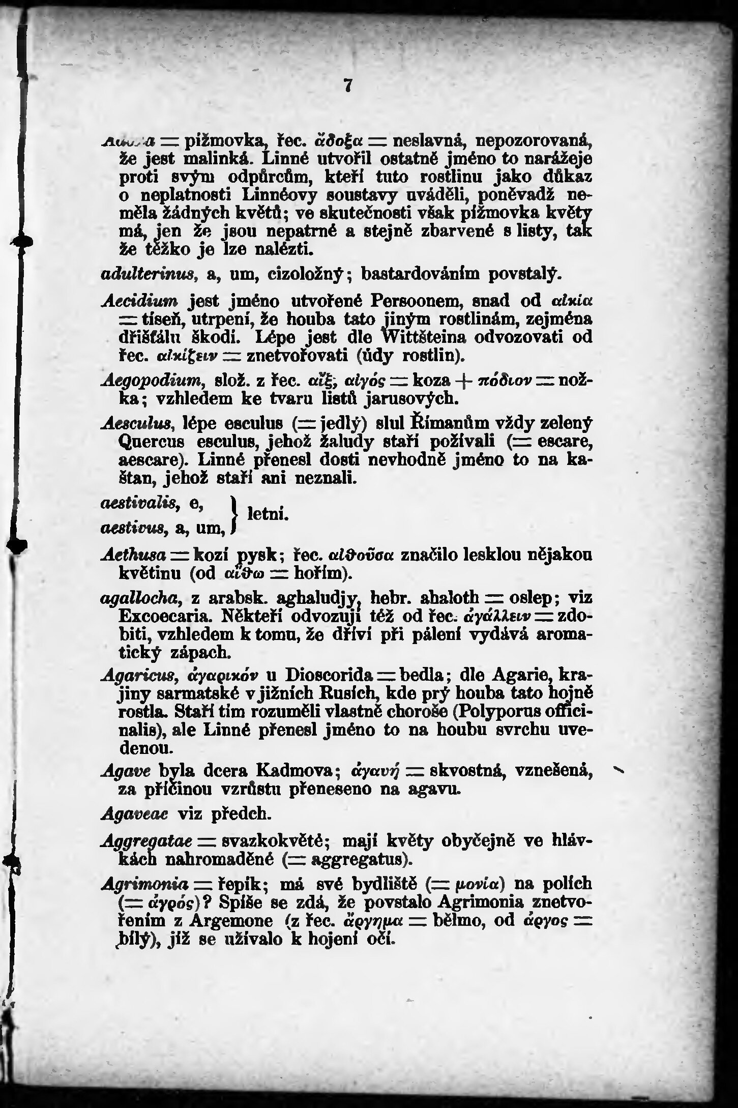 * Volná část monografie: svazek - Etymologický slovníček latinského názvosloví přírodopisného.