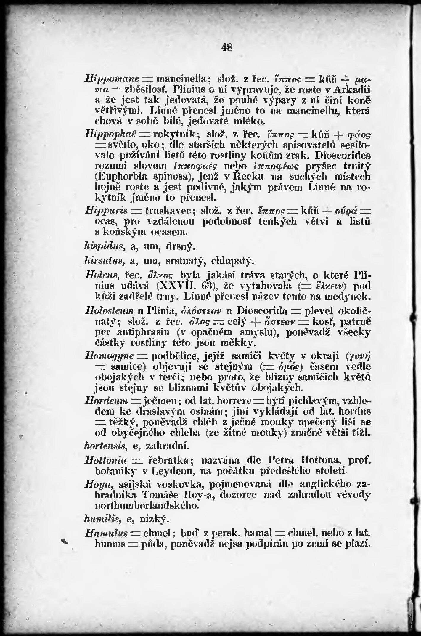 * Volná část monografie: svazek - Etymologický slovníček latinského názvosloví přírodopisného.