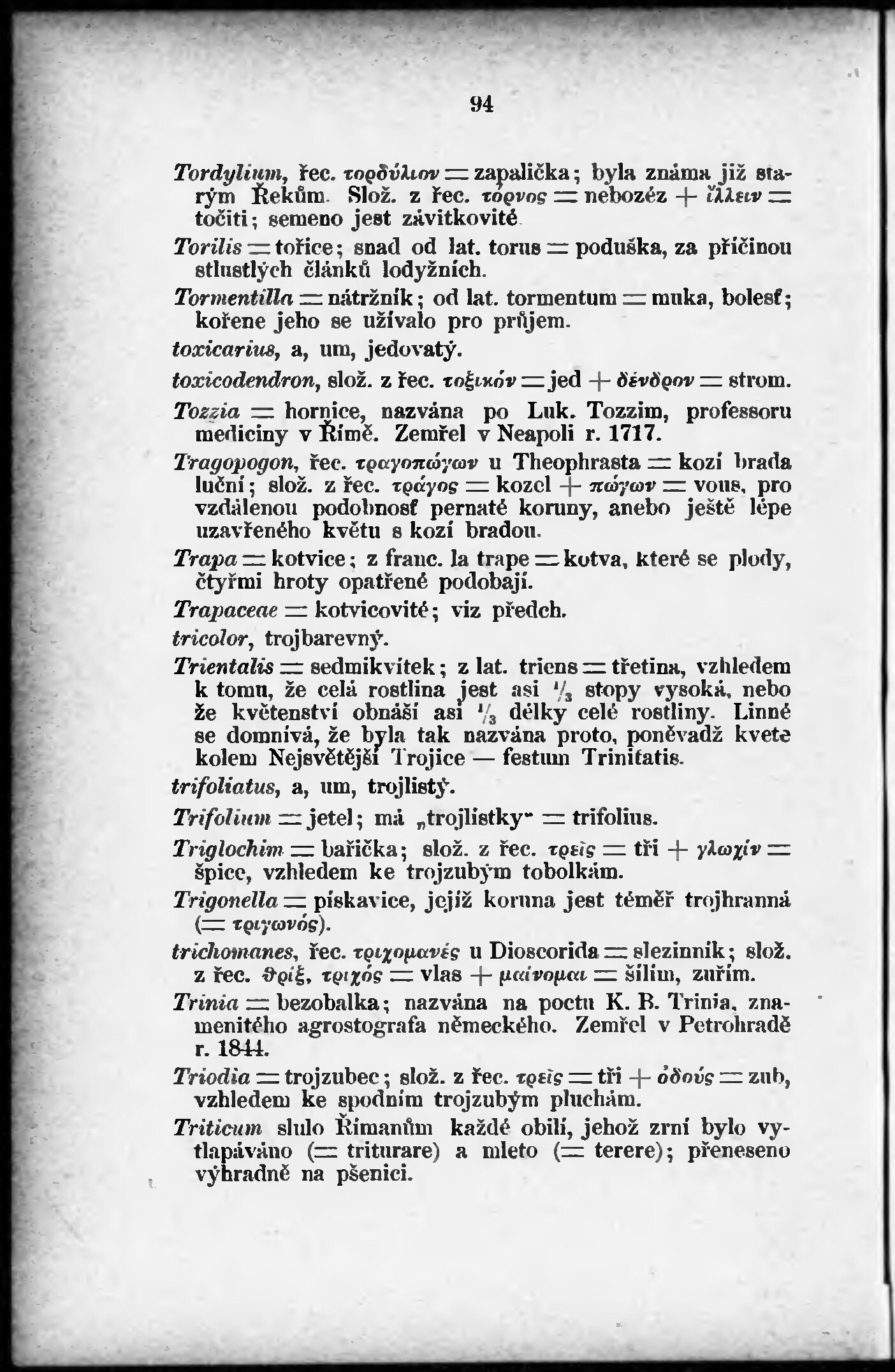 * Volná část monografie: svazek - Etymologický slovníček latinského názvosloví přírodopisného.