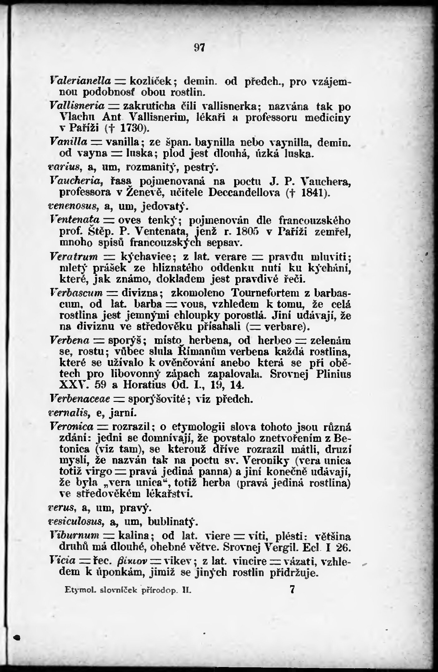 * Volná část monografie: svazek - Etymologický slovníček latinského názvosloví přírodopisného.