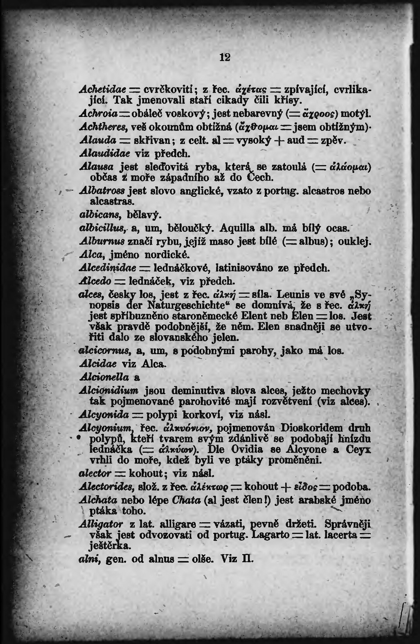 * Volná část monografie: svazek - Etymologický slovníček latinského názvosloví přírodopisného.