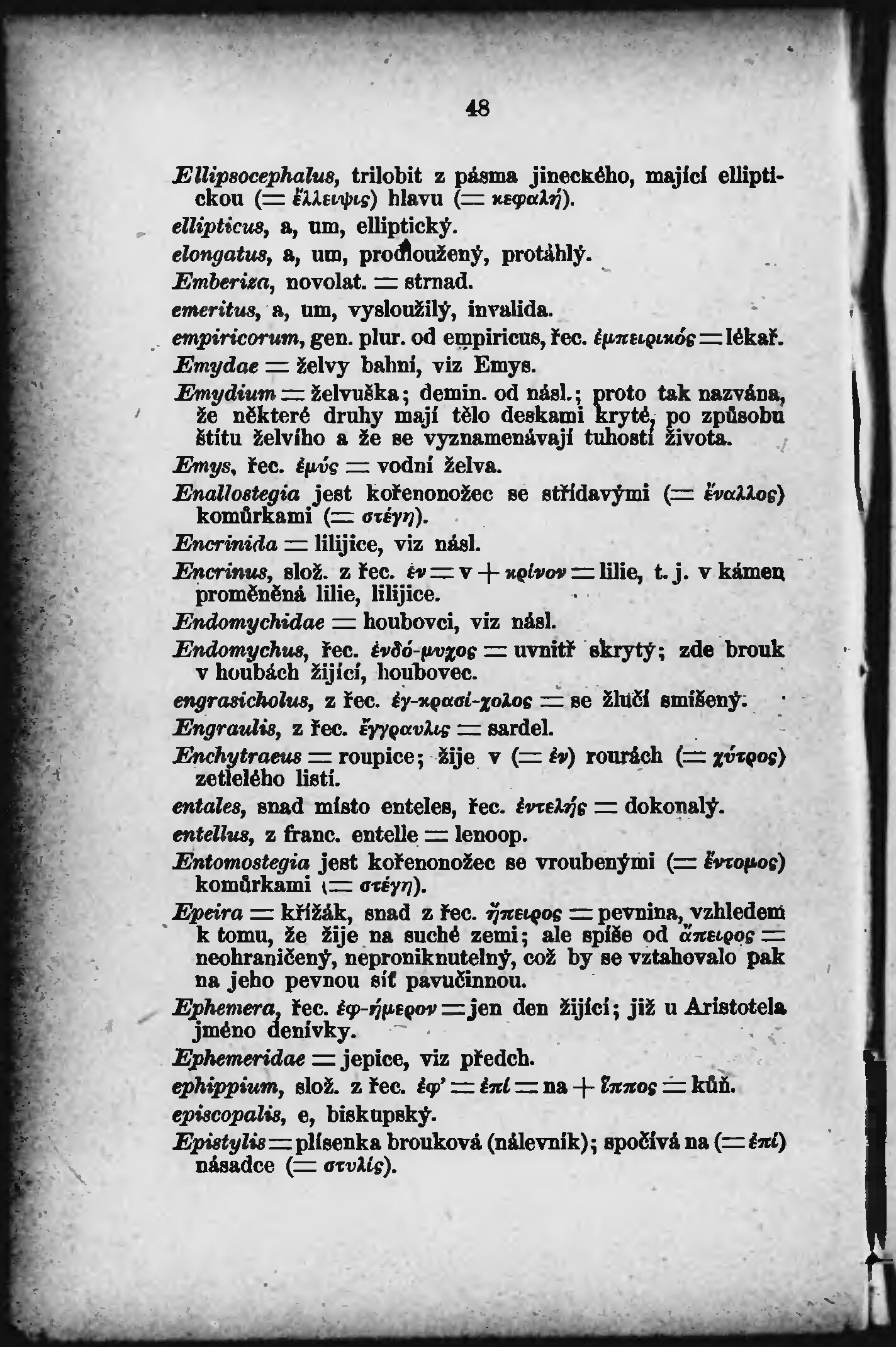 * Volná část monografie: svazek - Etymologický slovníček latinského názvosloví přírodopisného.