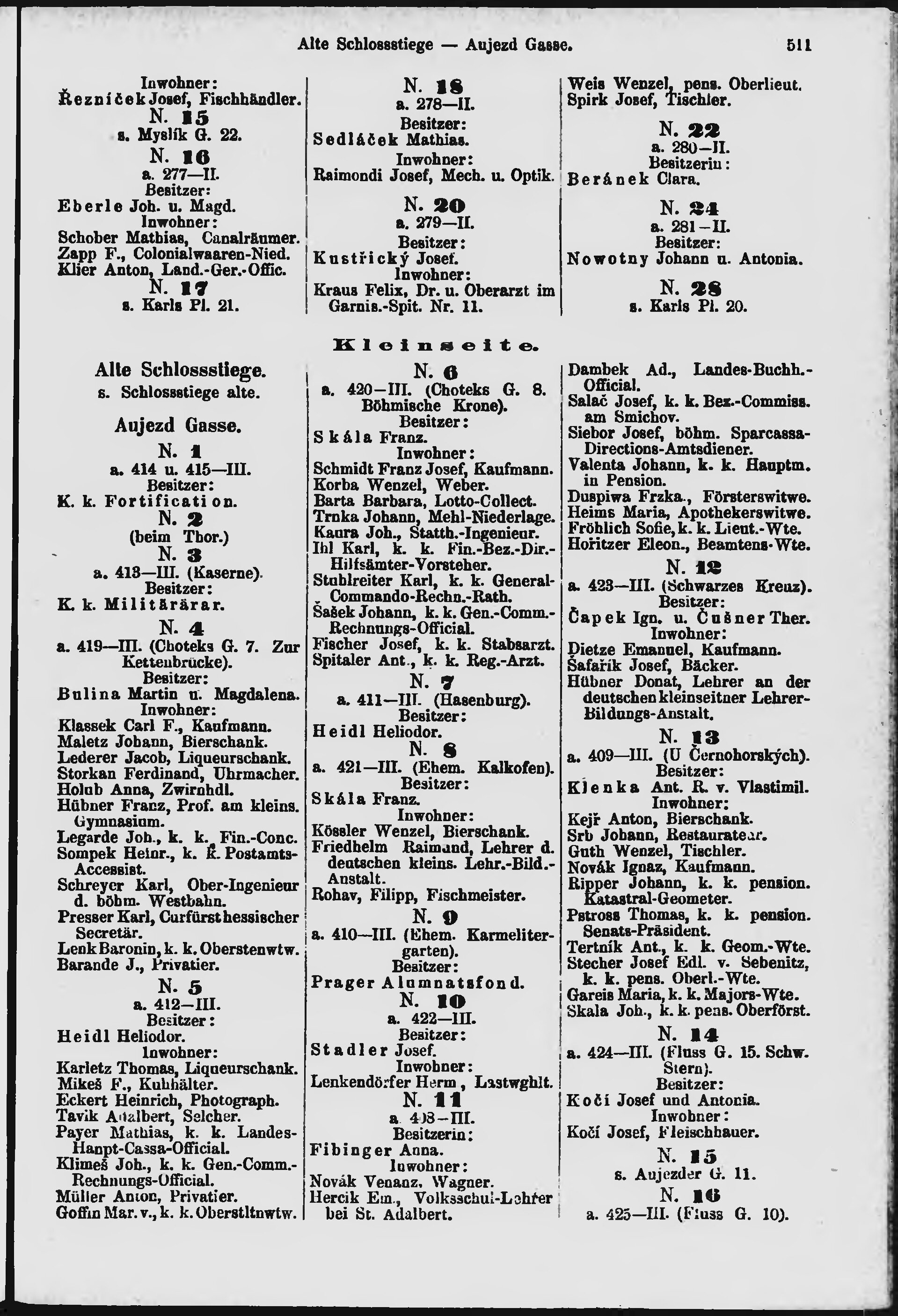 * Volná část monografie: svazek - Allgemeines Adress- und Handels- Handbuch der Hauptstadt Prag sammt Vorstädten