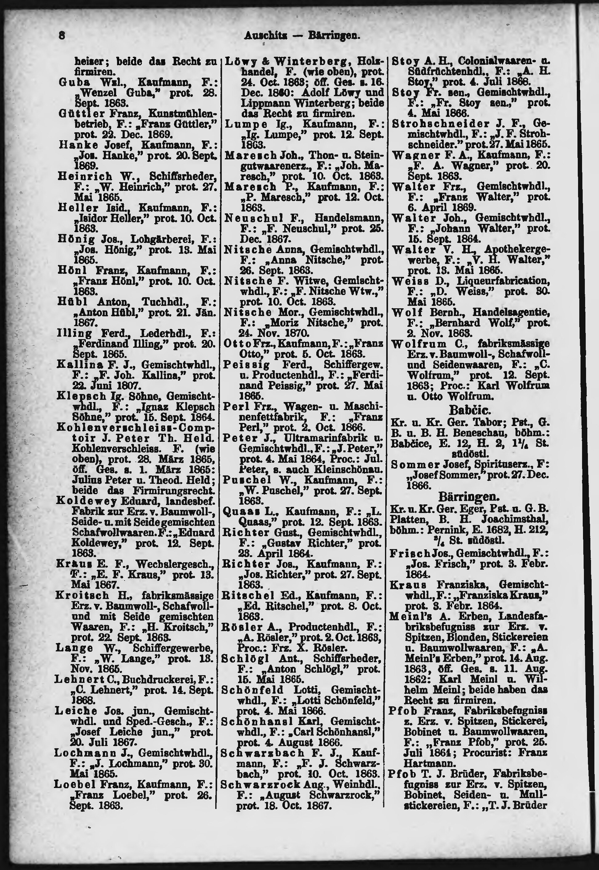 * Volná část monografie: svazek - Allgemeines Adress- und Handels- Handbuch der Hauptstadt Prag sammt Vorstädten