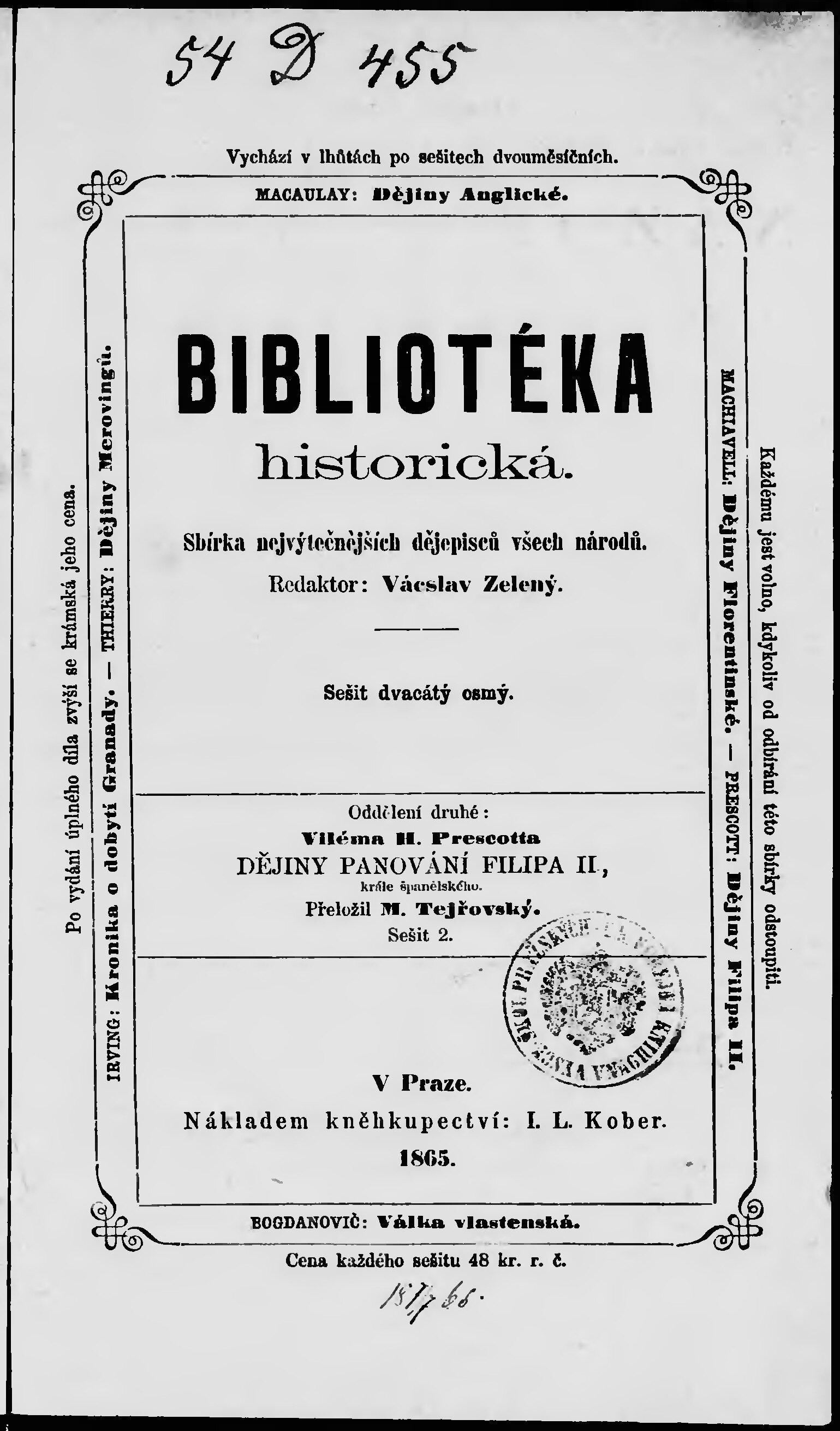 * Volná část monografie: svazek - Dějiny panování Filipa II., krále španělského.