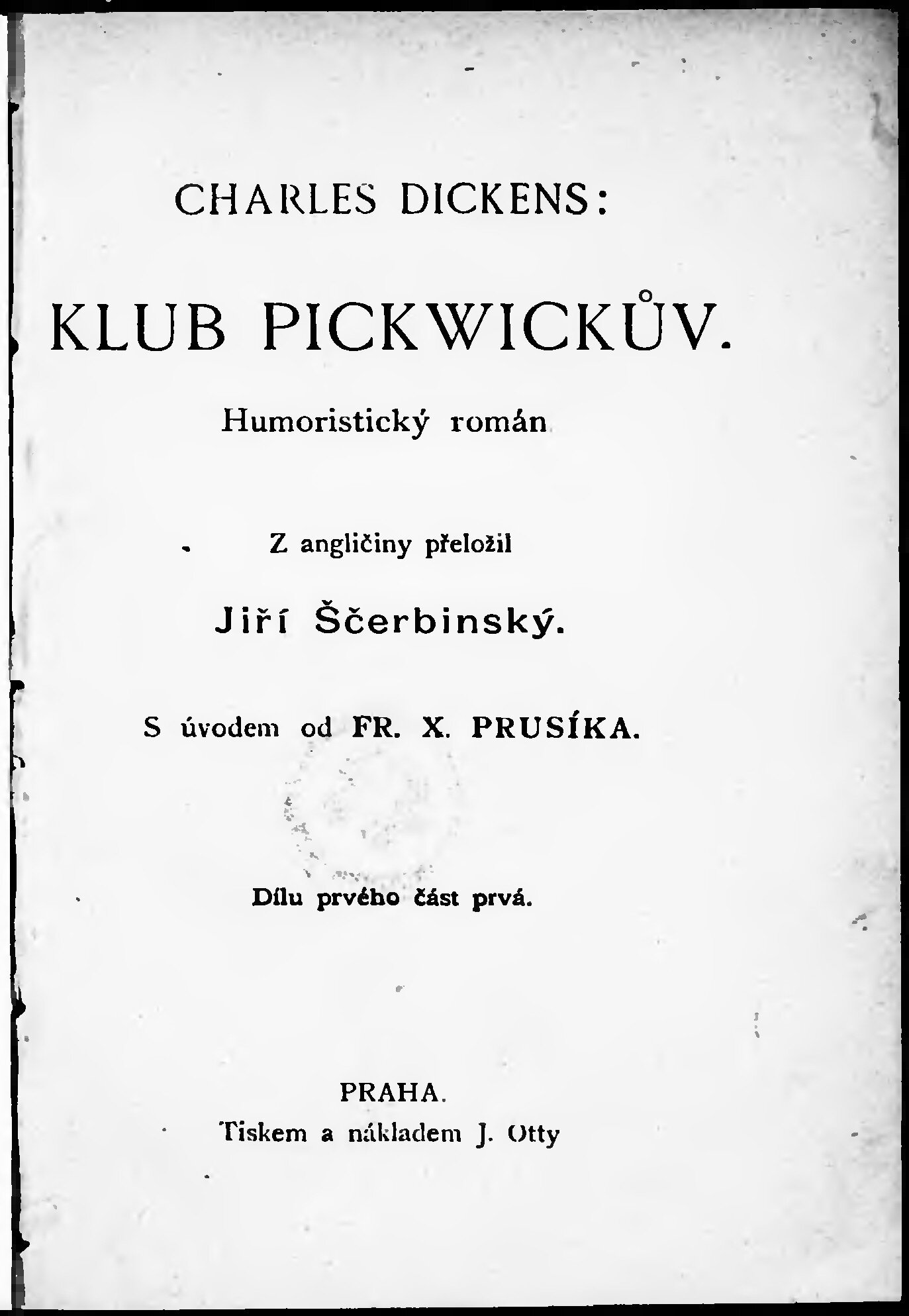 * Volná část monografie: svazek - Klub Pickwickův