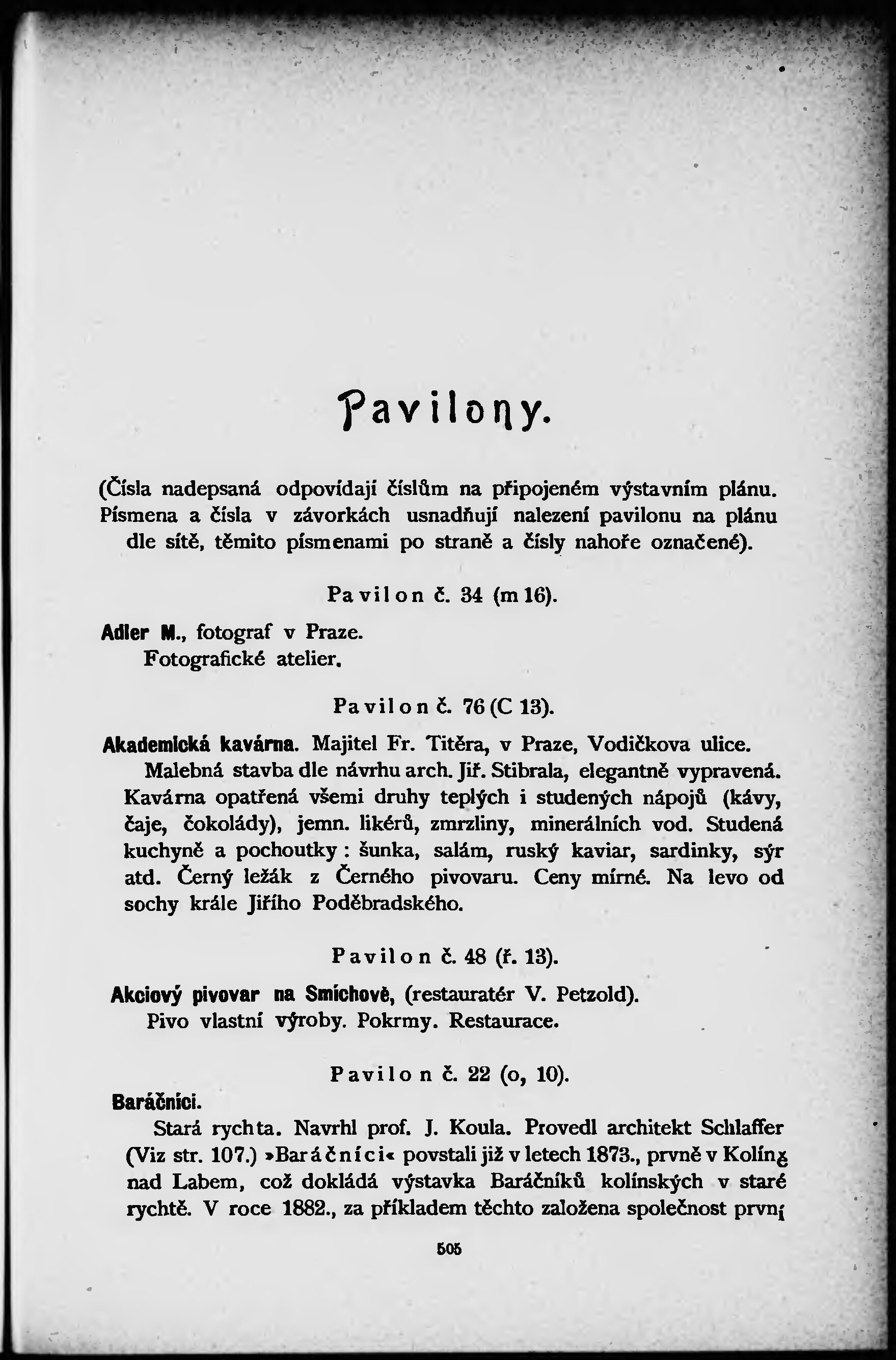 * Hlavní název: Pavilony, podniky zábavné, hostinství, ochutnávárny a živnosti ve Staré Praze