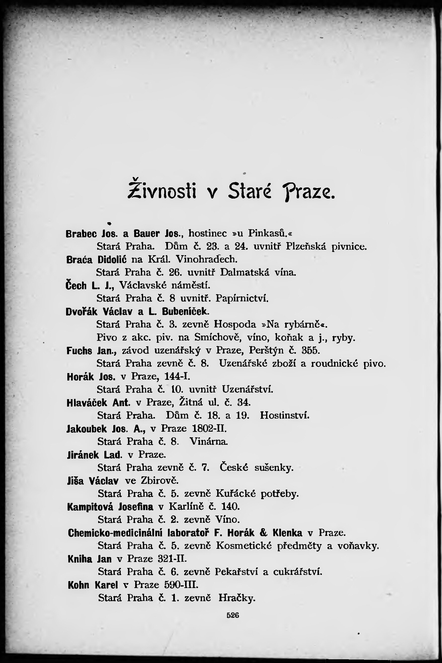 Pavilony, podniky zábavné, hostinství, ochutnávárny a živnosti ve Staré Praze