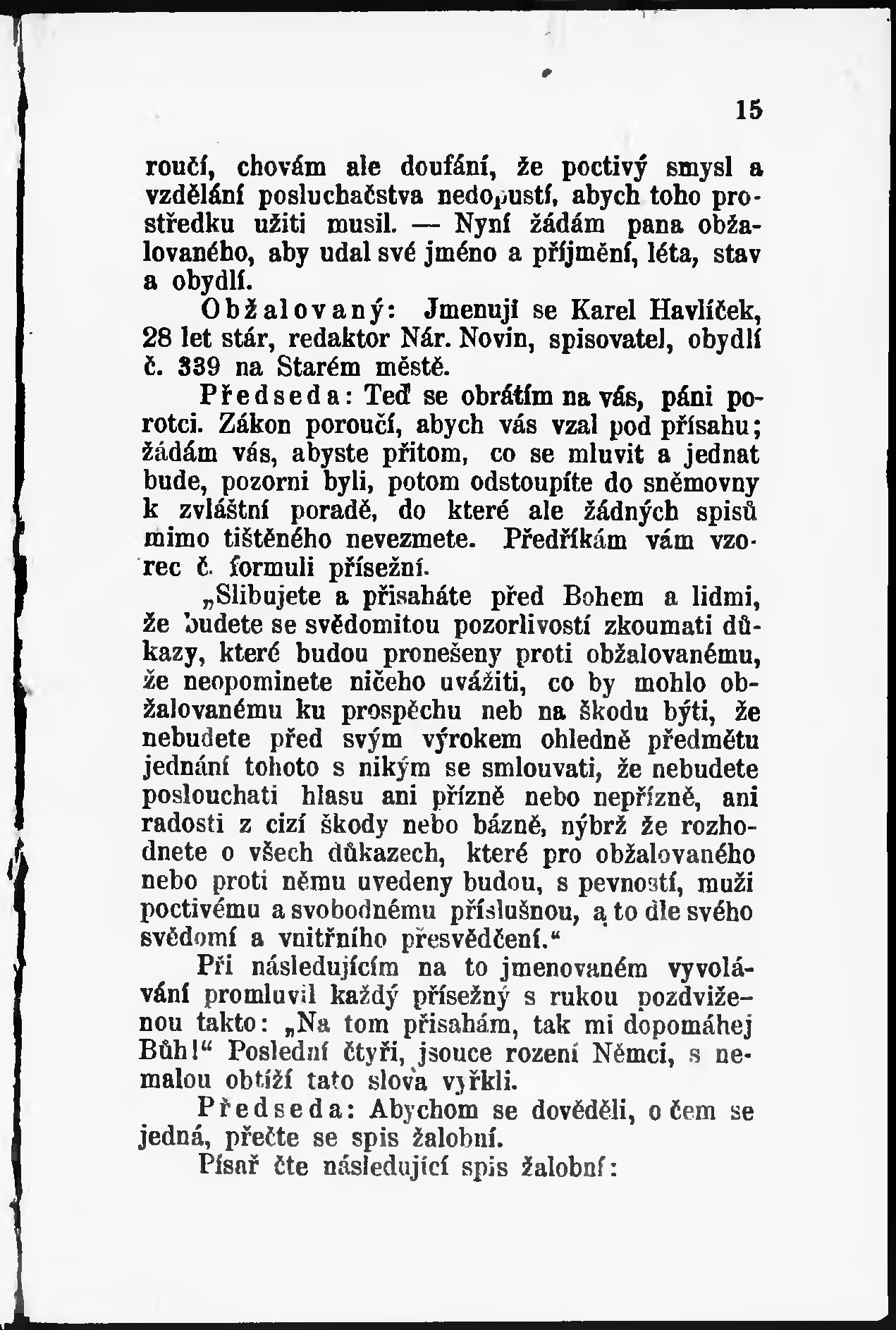 Karel Havlíček před porotou Pražskou dne 13. dubna 1849