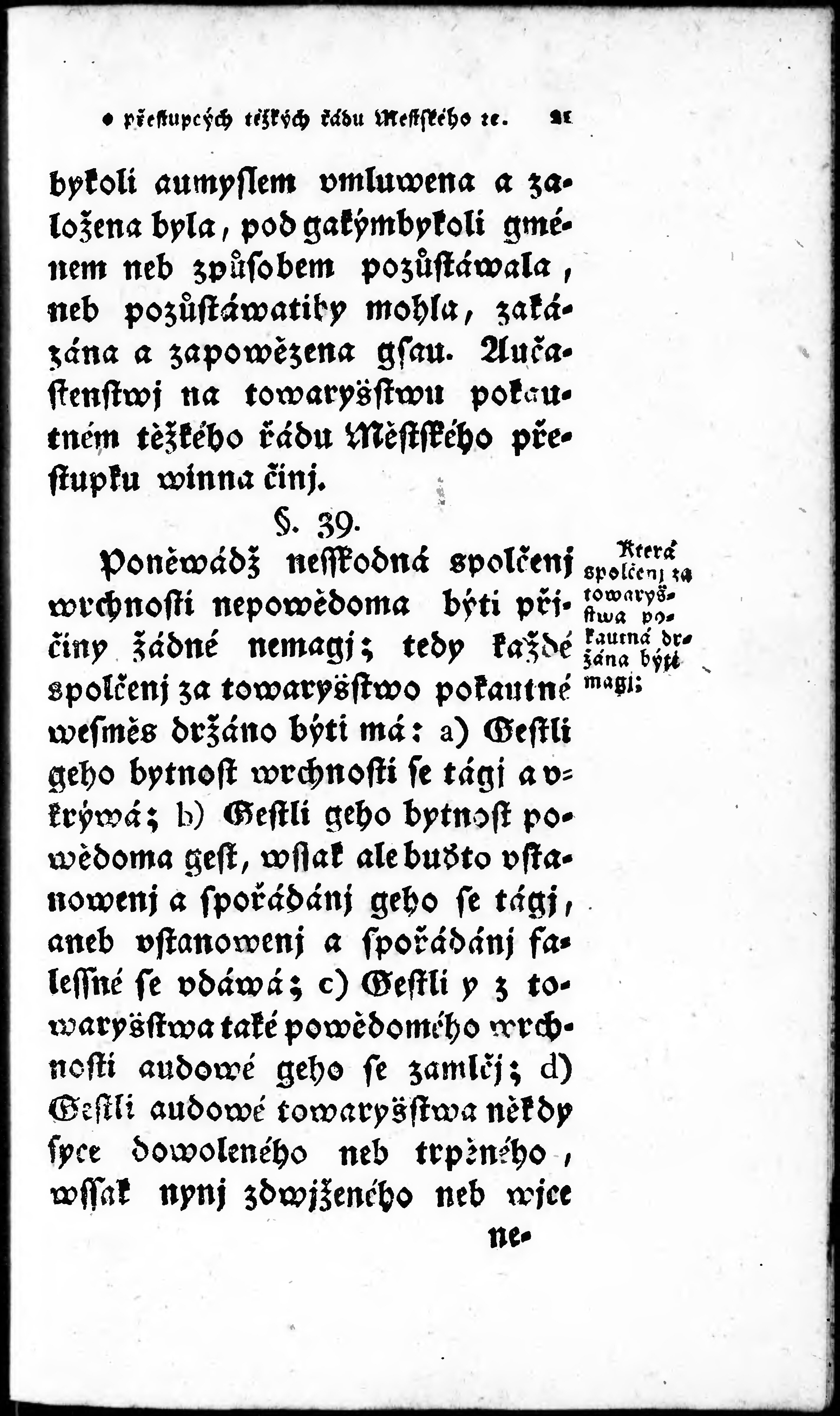 O těžkých řádu Městského (Policye) přestupcých, a w přjčině gich pokračowánj