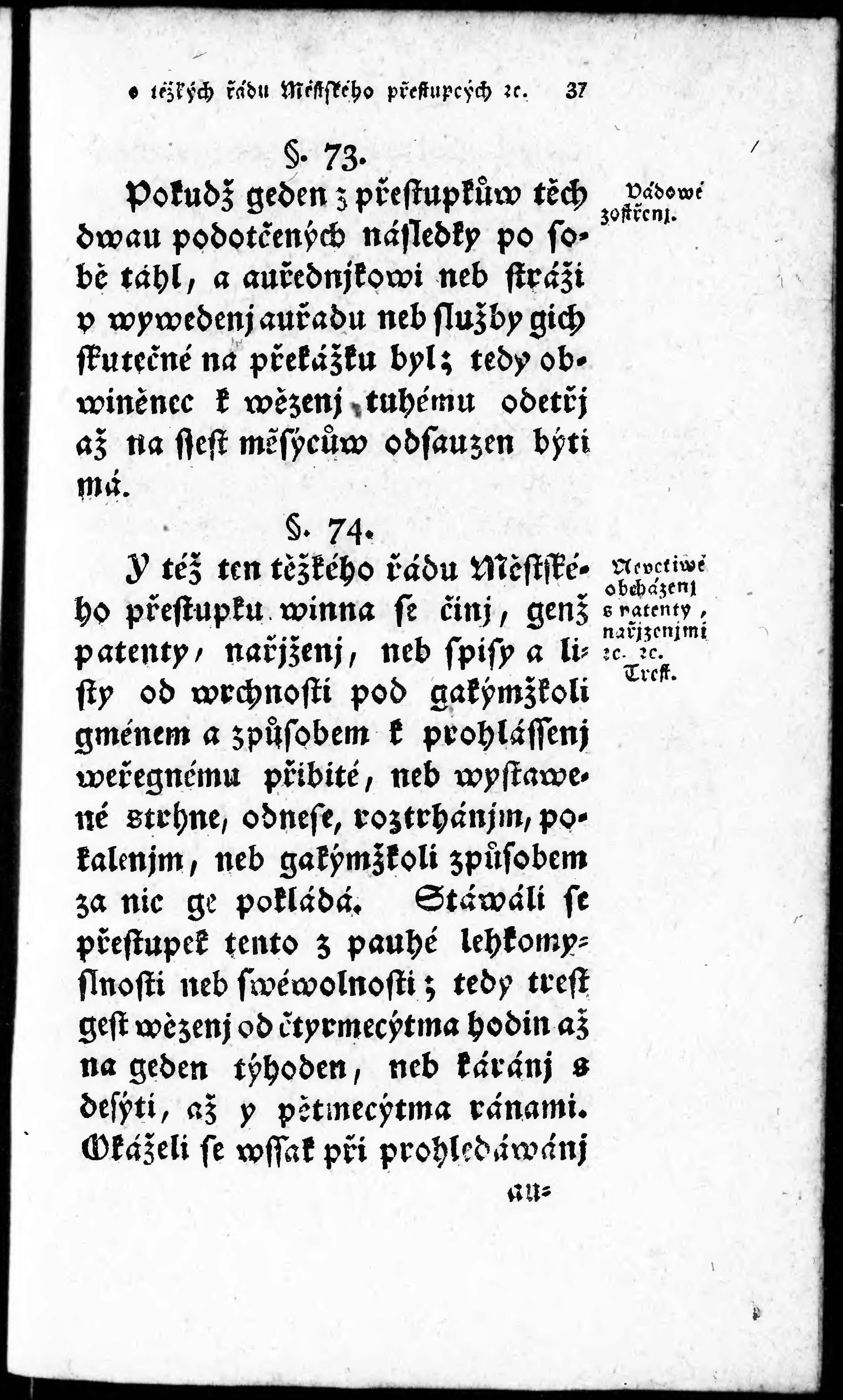 O těžkých řádu Městského (Policye) přestupcých, a w přjčině gich pokračowánj
