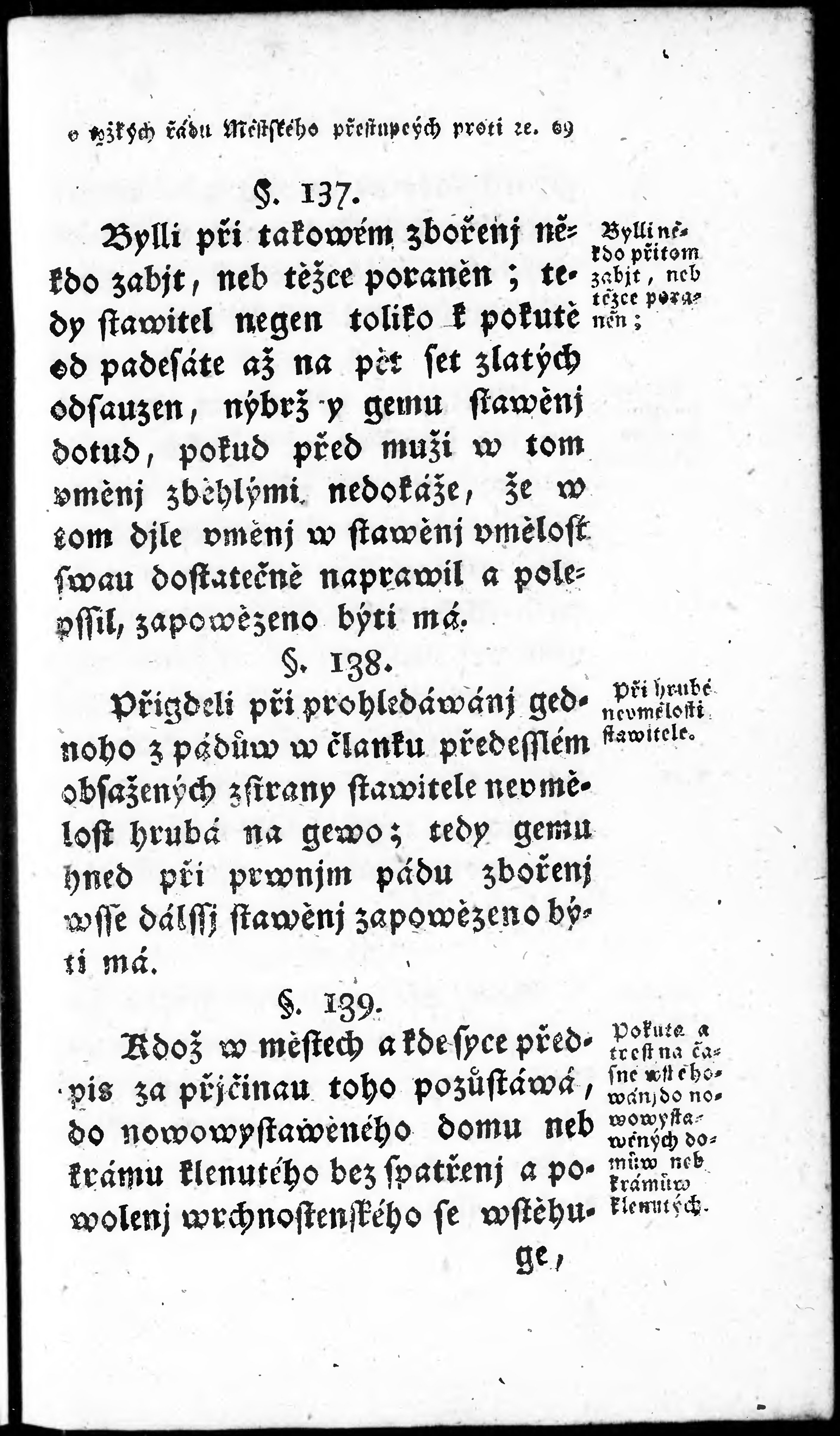 O těžkých řádu Městského (Policye) přestupcých, a w přjčině gich pokračowánj