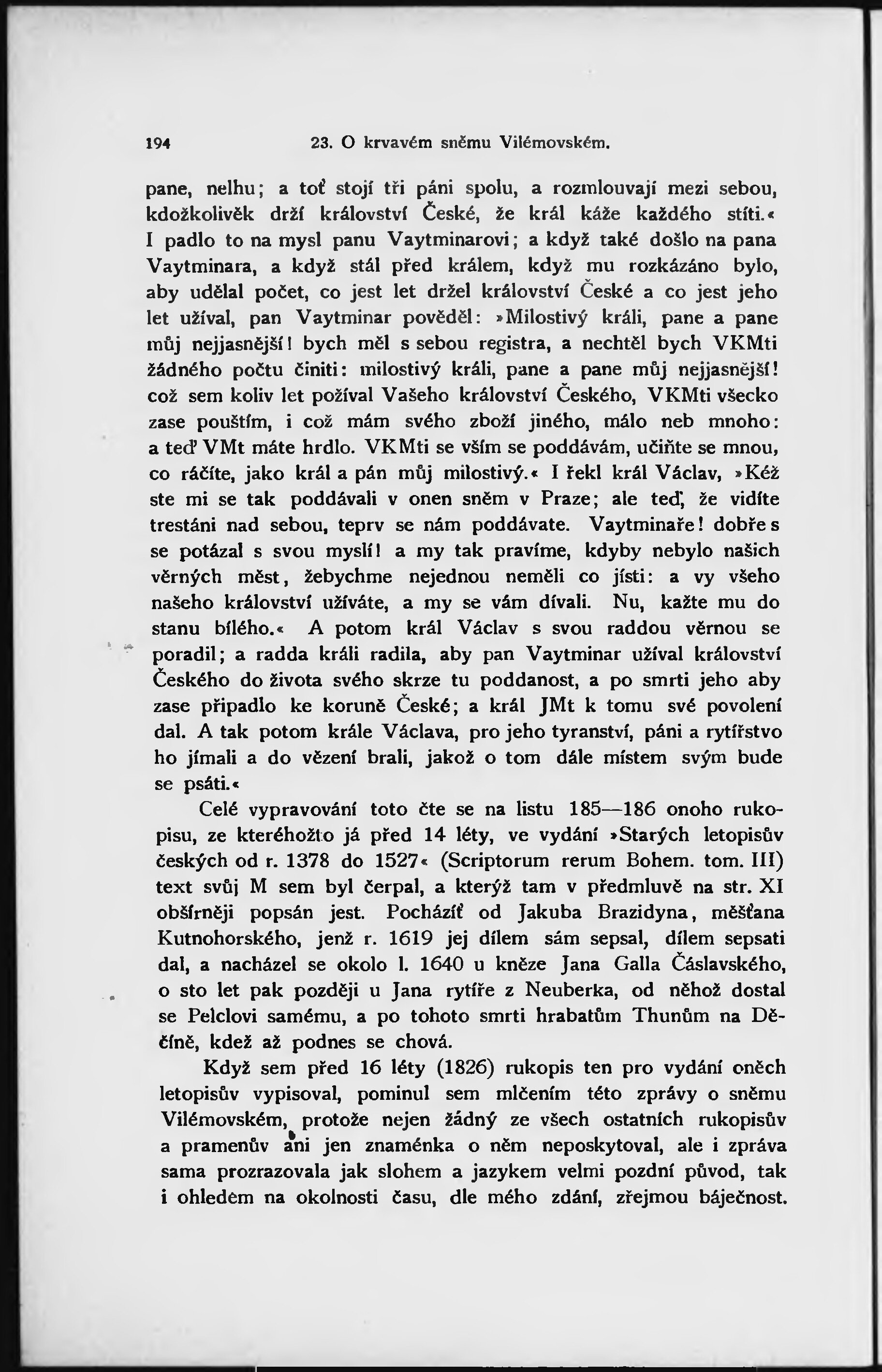 O báji krvavého sněmu Vilímovského za krále Václava IV. (1842)