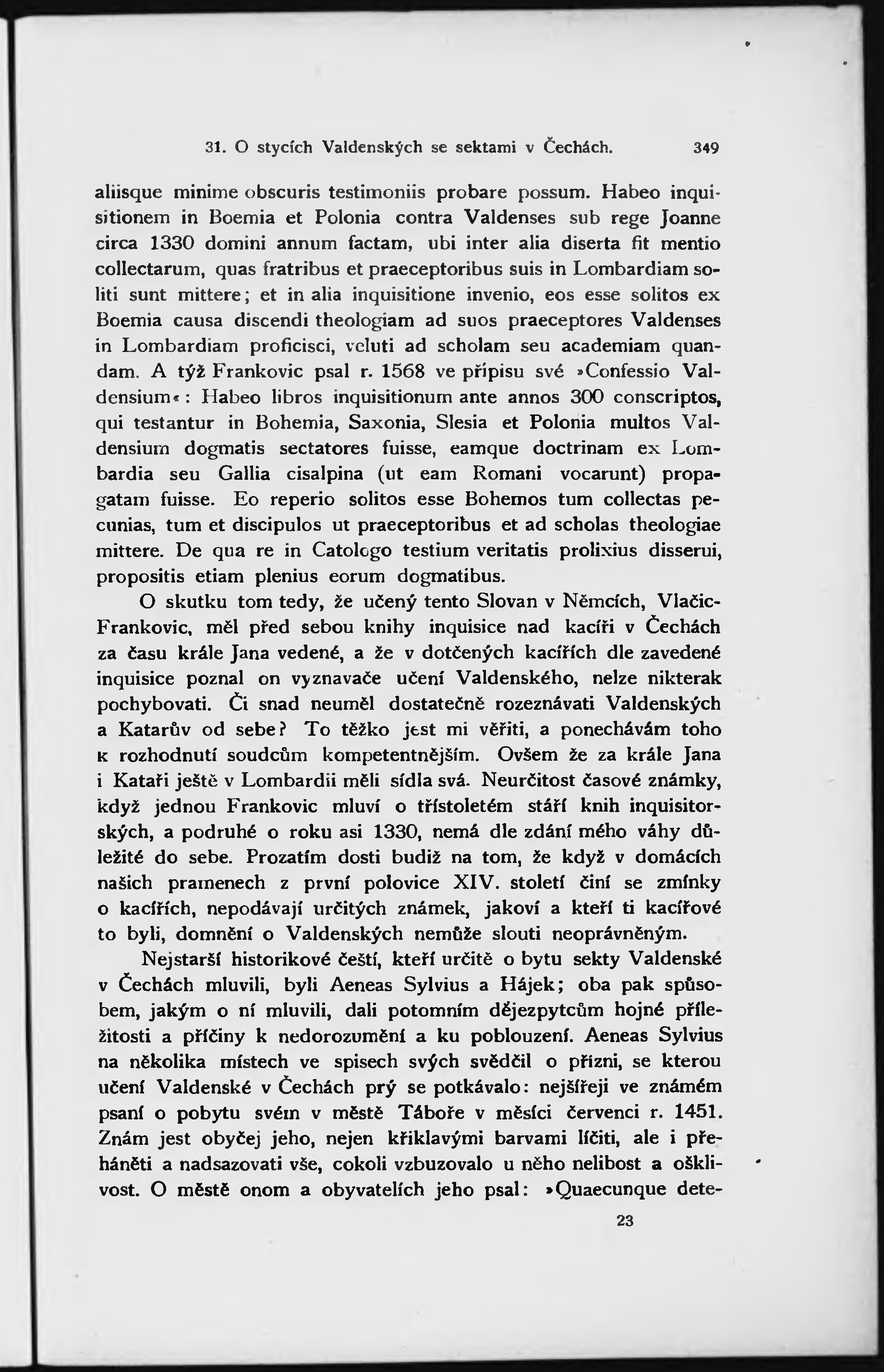 * Hlavní název: O stycích a poměru sekty Valdenské ...