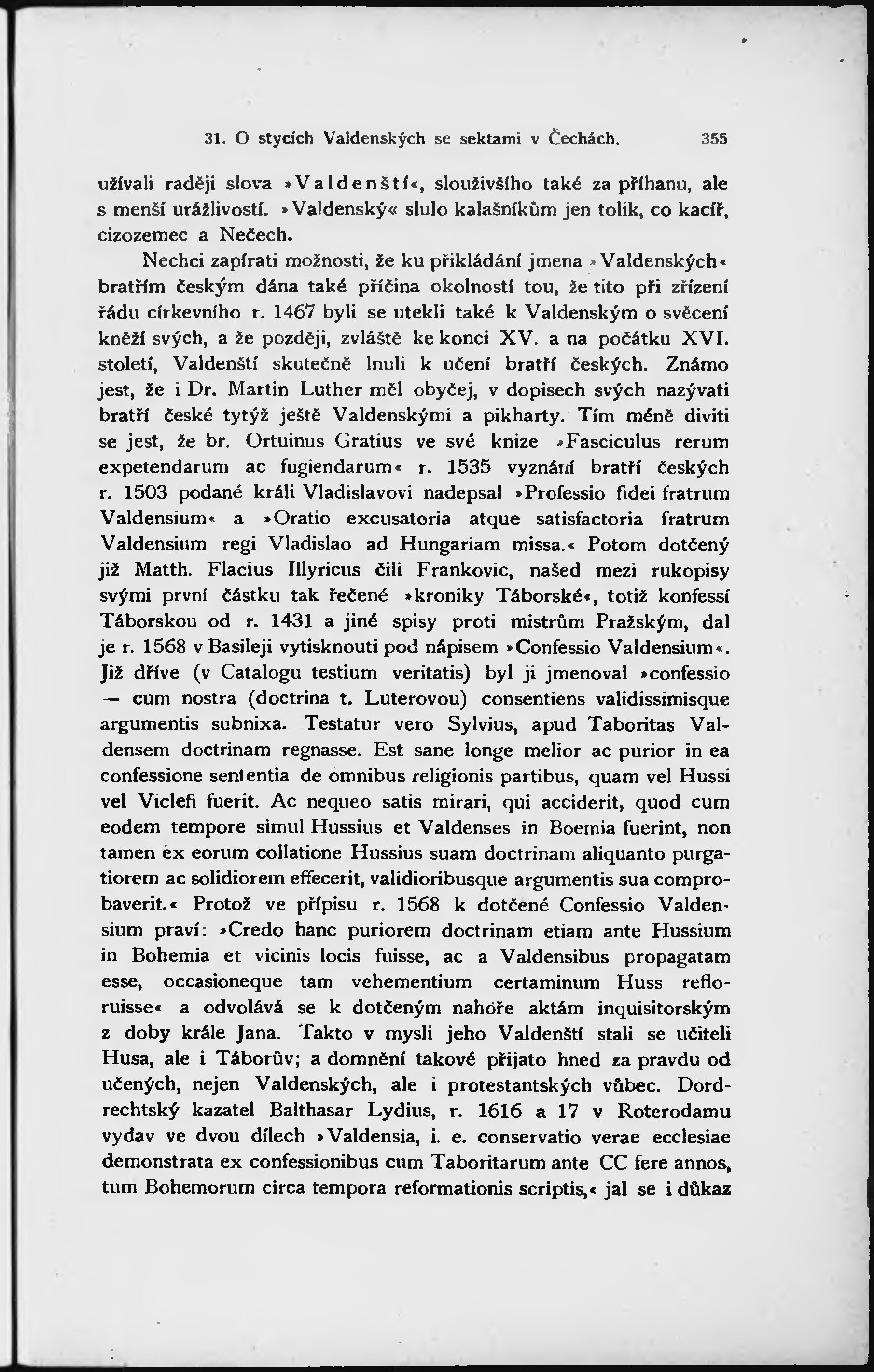 O stycích a poměru sekty Valdenské ...