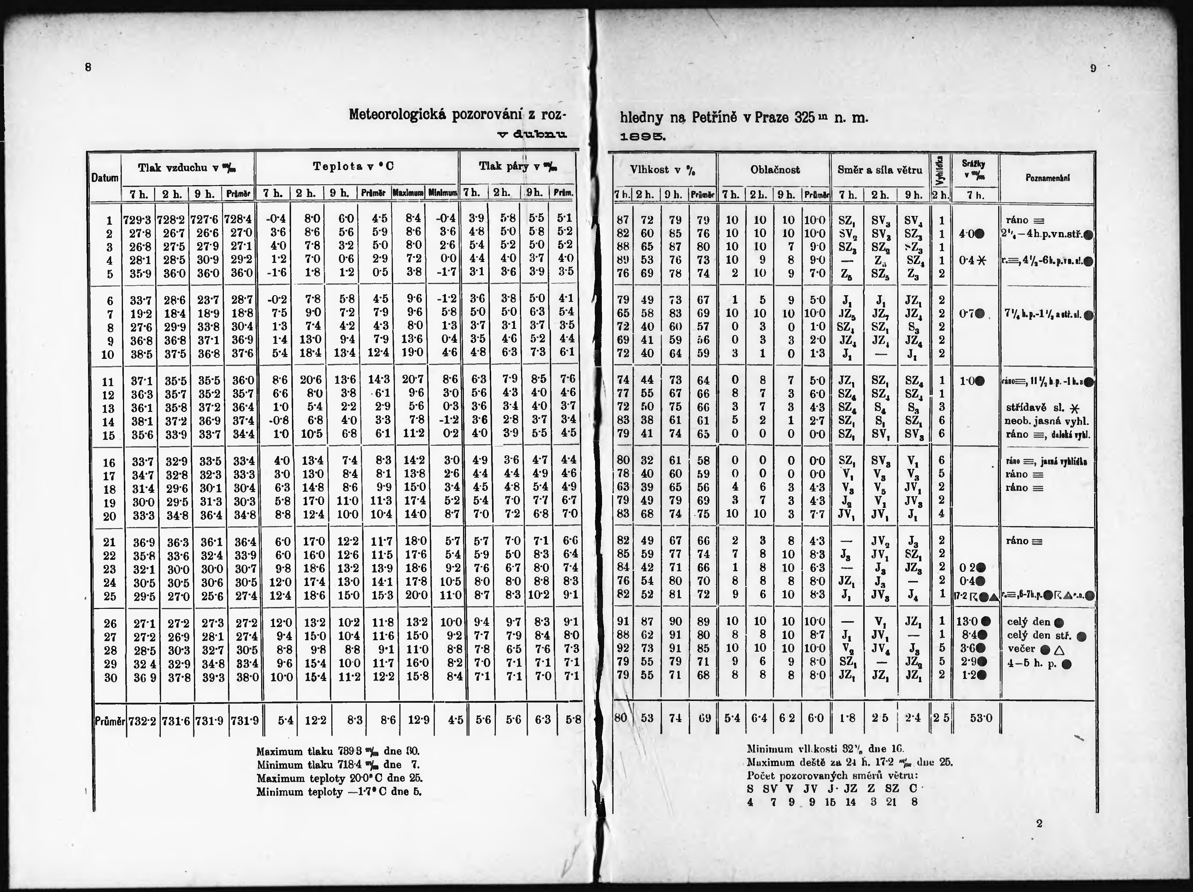 Meteorologická pozorování z rozhledny na Petříně v Praze r. ...