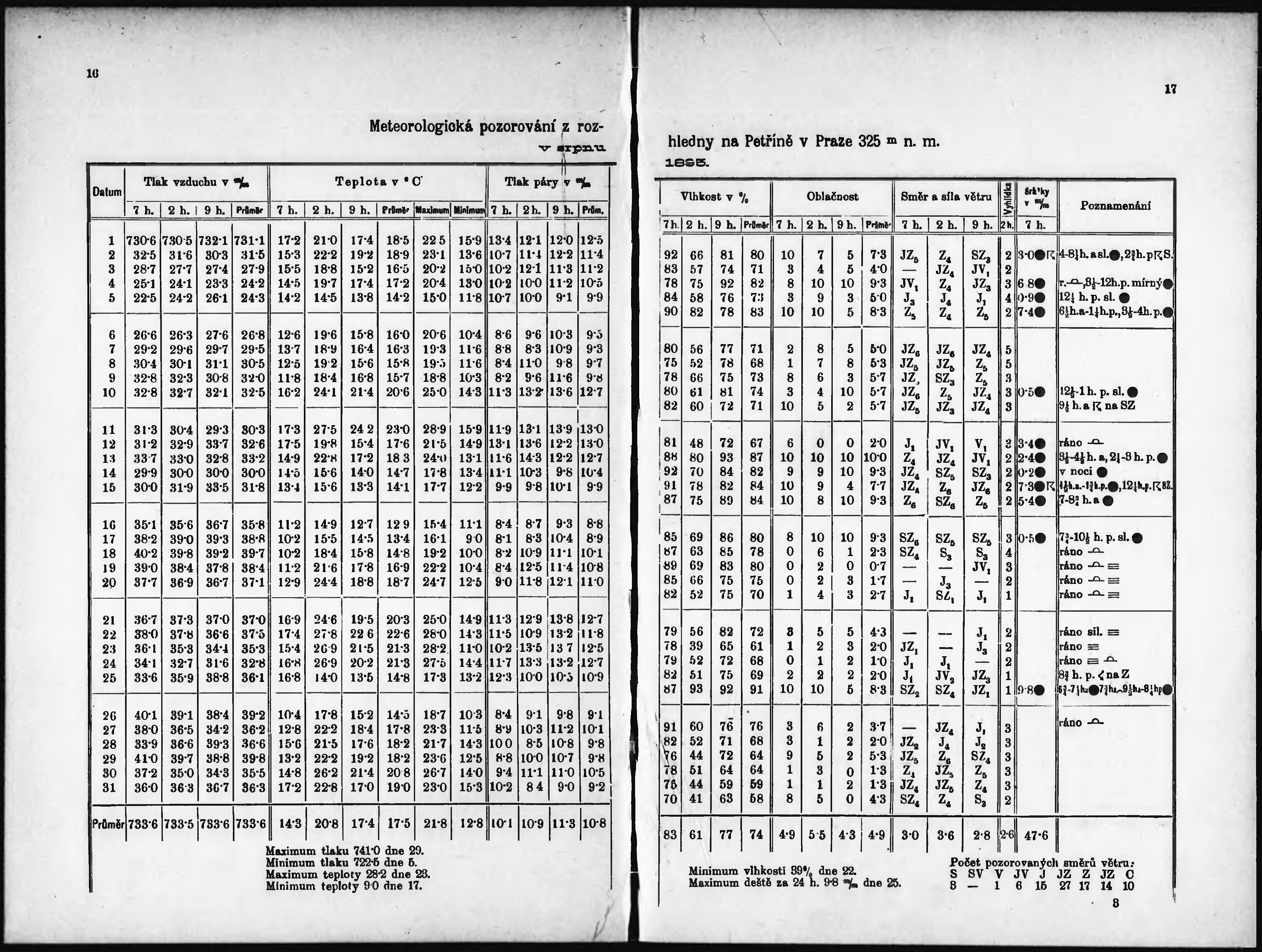 Meteorologická pozorování z rozhledny na Petříně v Praze r. ...