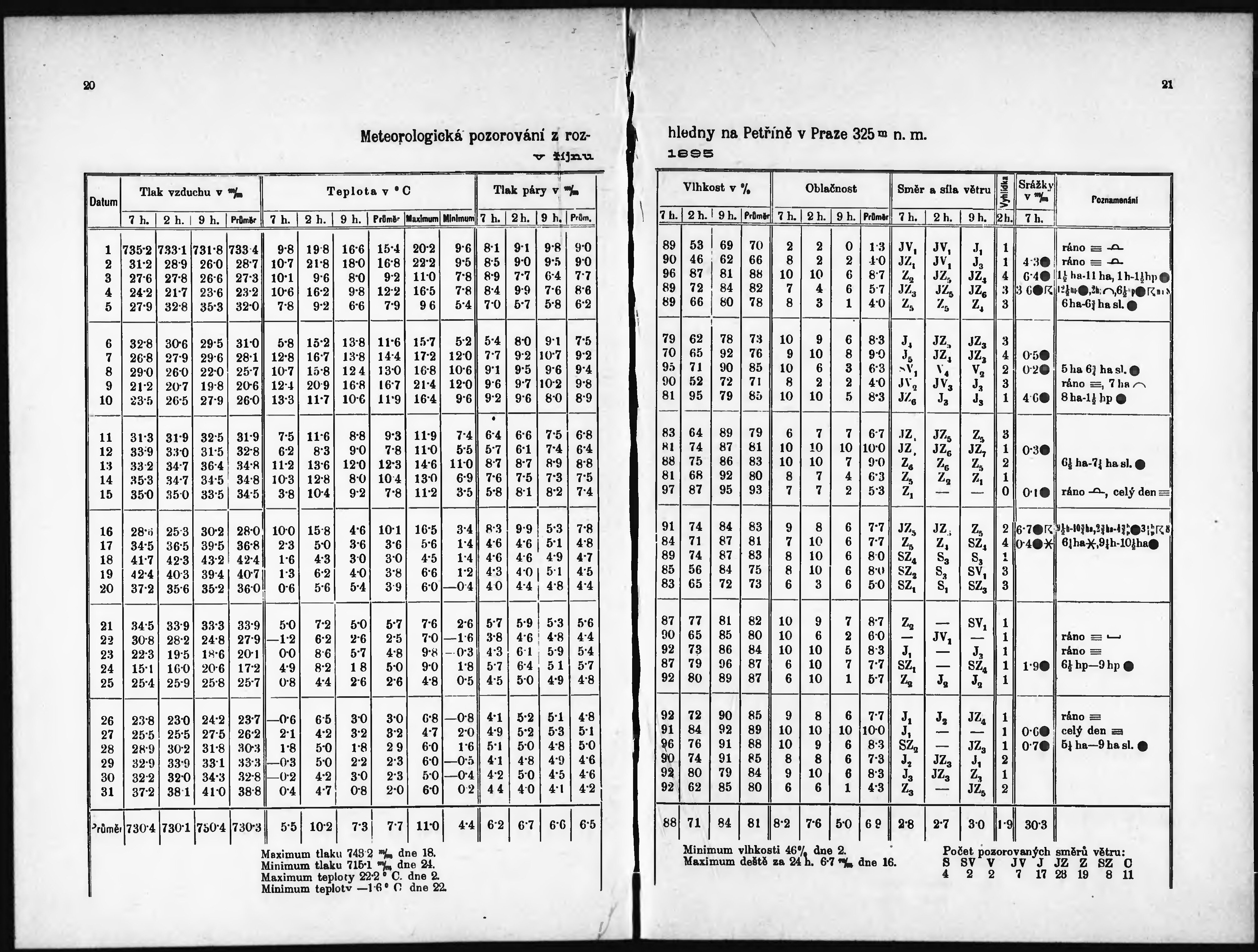 Meteorologická pozorování z rozhledny na Petříně v Praze r. ...
