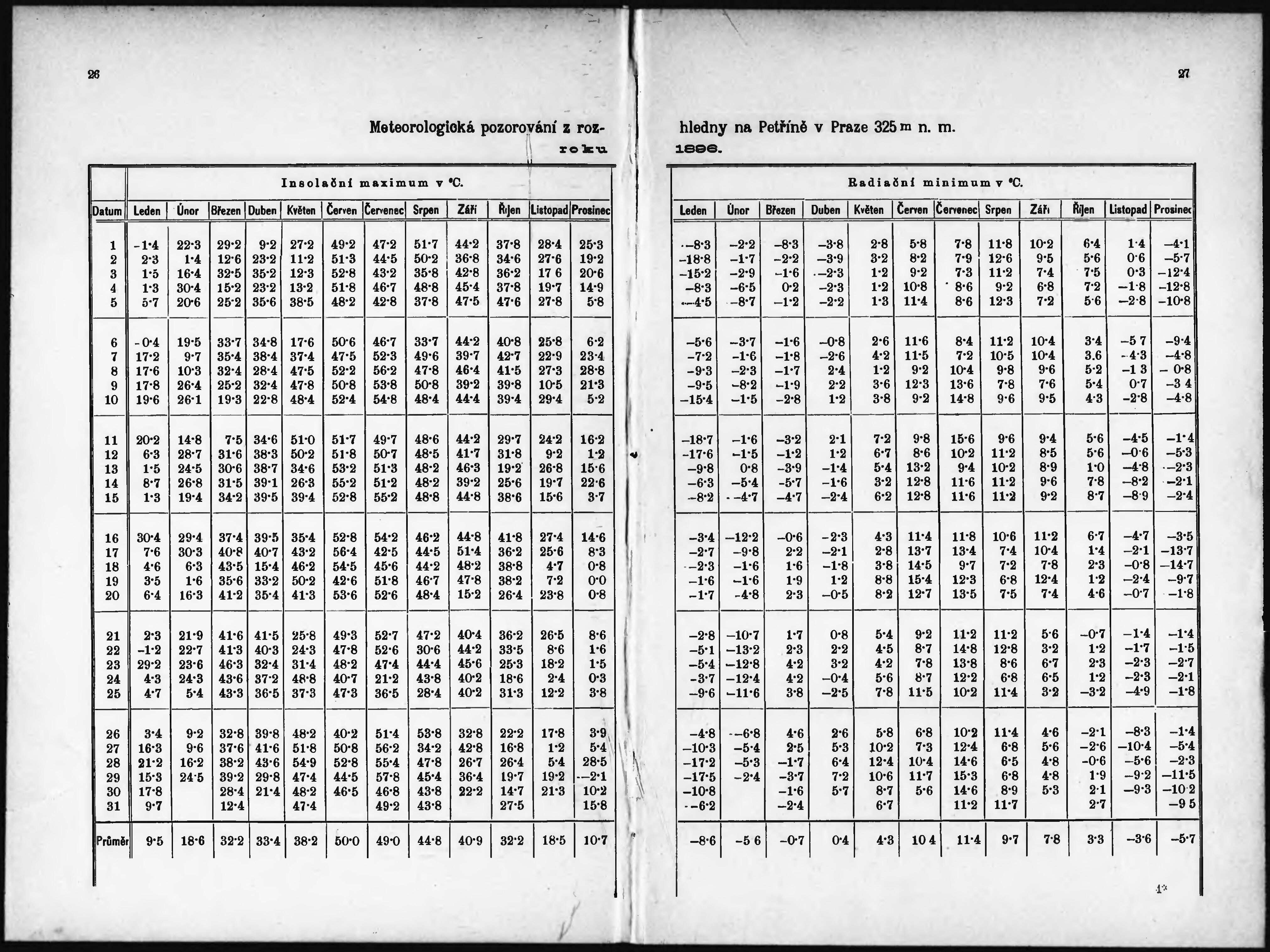 Meteorologická pozorování z rozhledny na Petříně v Praze r. ...