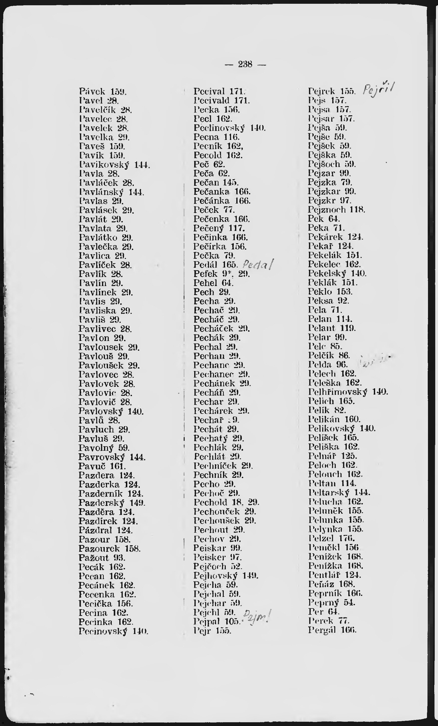 * Číslo stránky: 238 Typ stránky: rejstřík