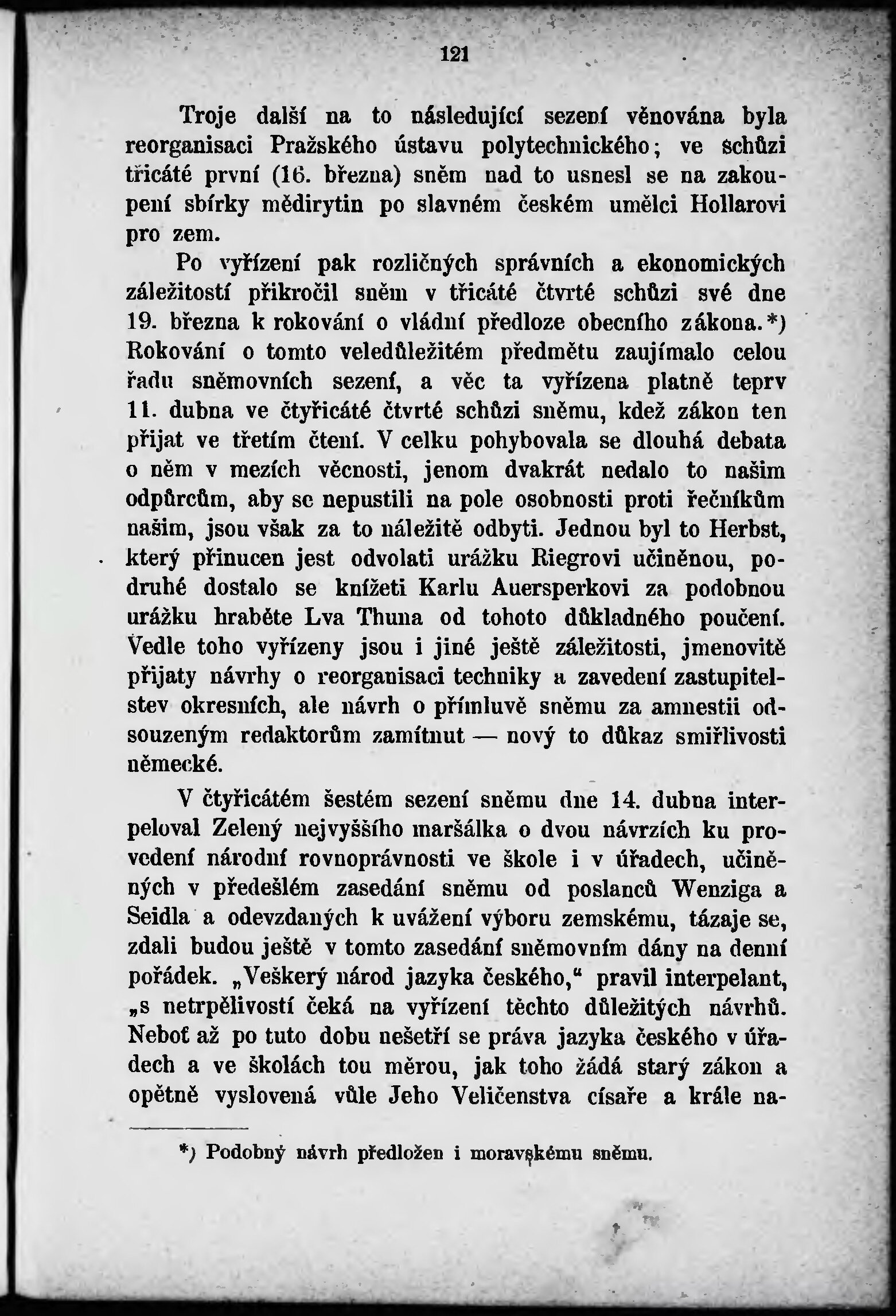 * Hlavní název: Zasedání zemského sněmu. Návrh o změně volebního řádu a petice za amnestii pro odsouzené redaktory zamítnuty. Přehled prospěšné činnosti sněmu