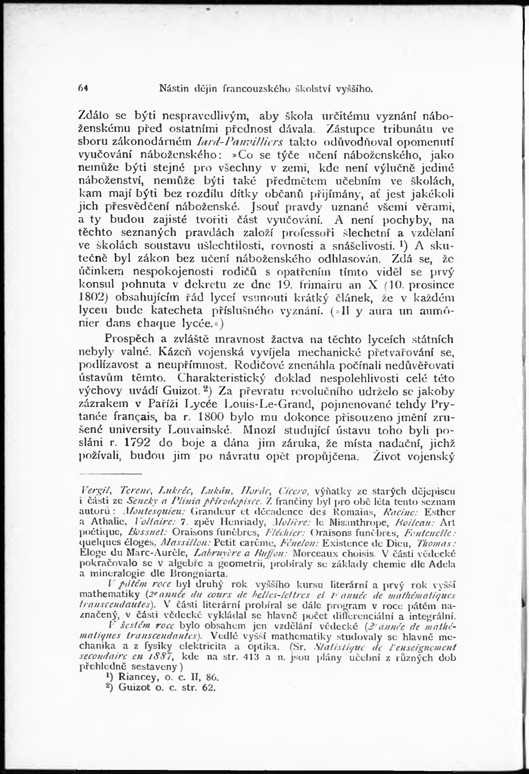 * Volná část monografie: svazek - Nástin dějin vyššího školství a theorií paedagogických ve Francii od dob revoluce