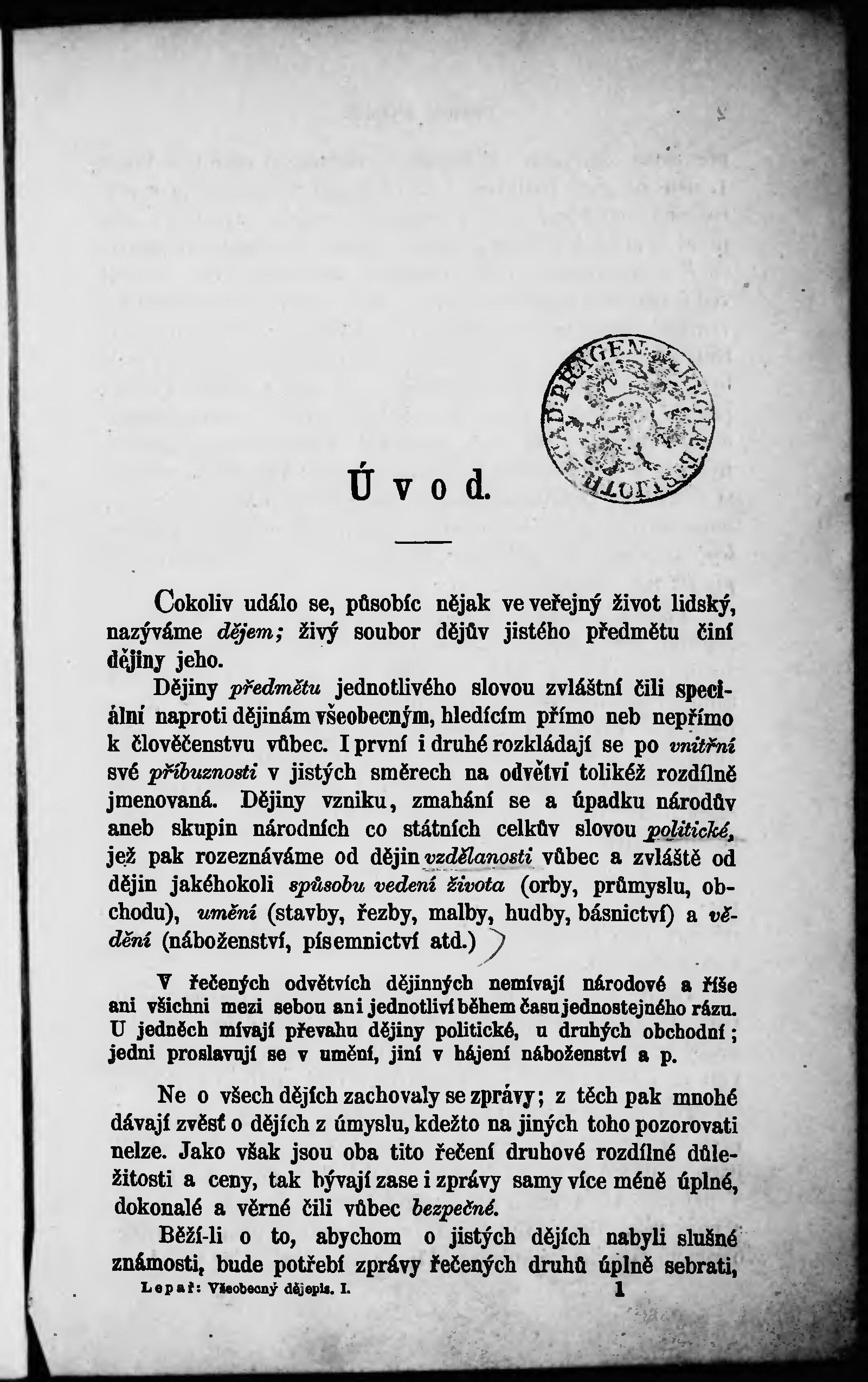 Jana Lepaře Všeobecný dějepis k potřebě žáků na vyšších gymn...