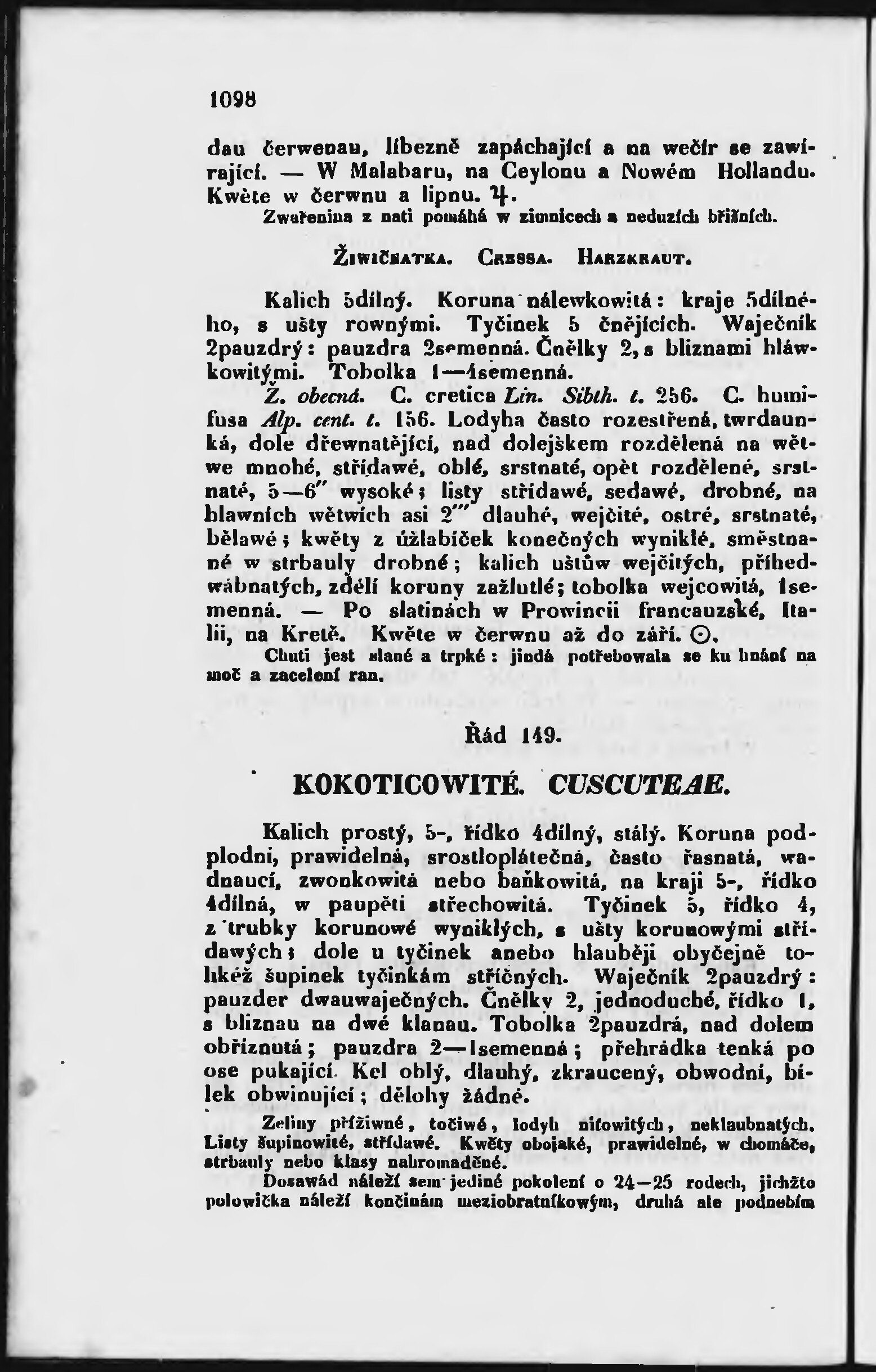 svazek - Jana Swatopluka Presla Wšeobecný rostlinopis, čili: popsání rostlin ....