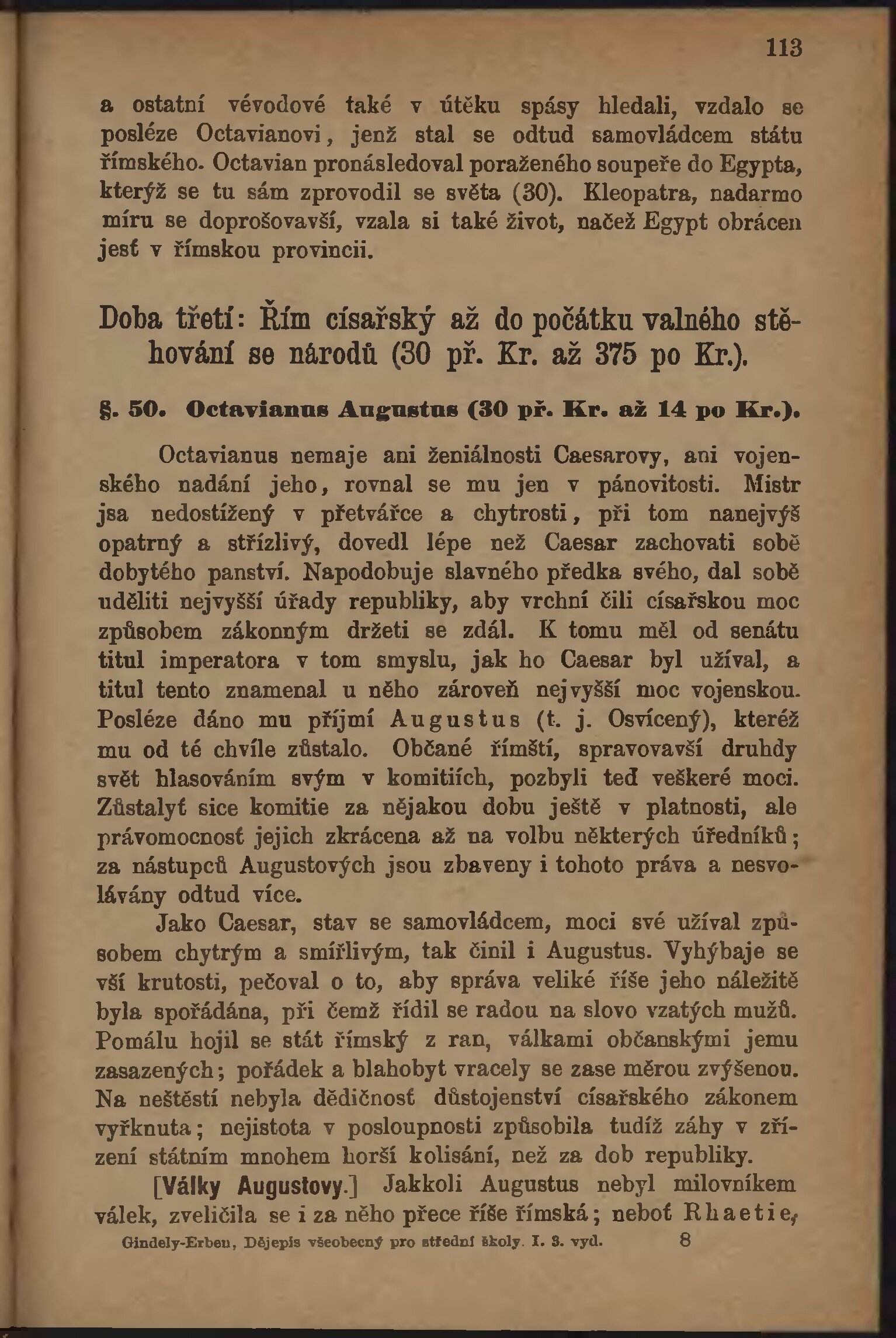svazek - Dr. Ant. Gindelyho Dějepis všeobecný pro nižší třídy škol středních
